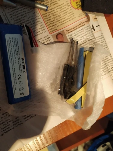 Аккумулятор подошёл. Чуть меньше по размерам, чем оригинал. Липкая лента из комплекта все выправила. Установил сам за минут 20. Маленькая крестовая отвёртка и нож - все, что требуется. Набор из комплекта для этого никак не подходит. Пригодится, может, для разборки телефона. Когда будете отворачивать - осторожнее с динамиками и не роняйте внутрь винтики - они прилипнут к магнитам. Да, экспресс доставка у нас очень весёлая, но привезли в этот раз довольно быстро и вечером. Пока все работает.