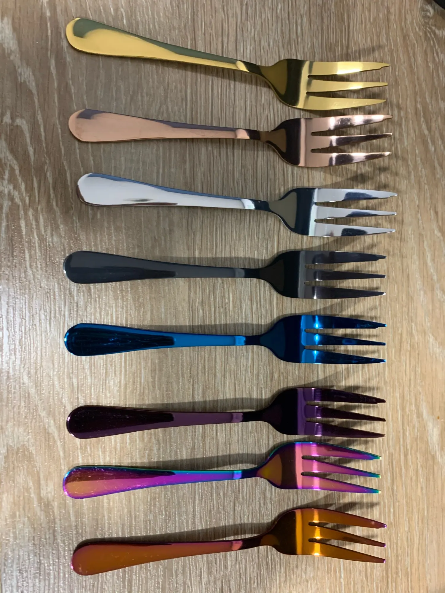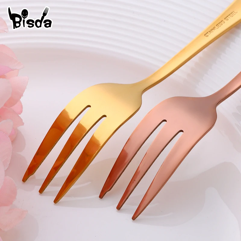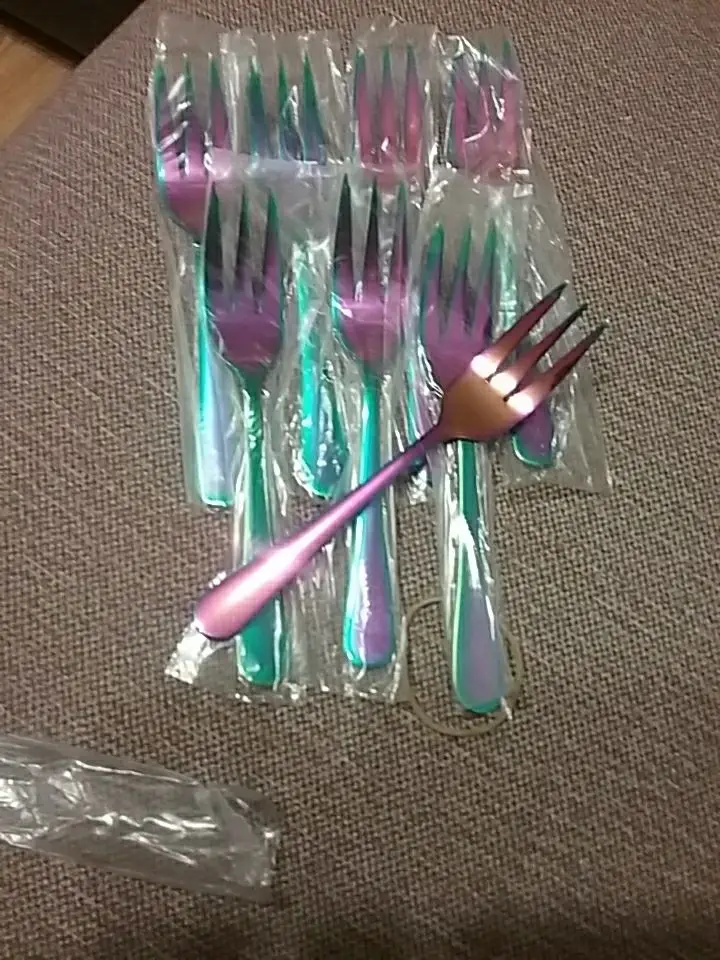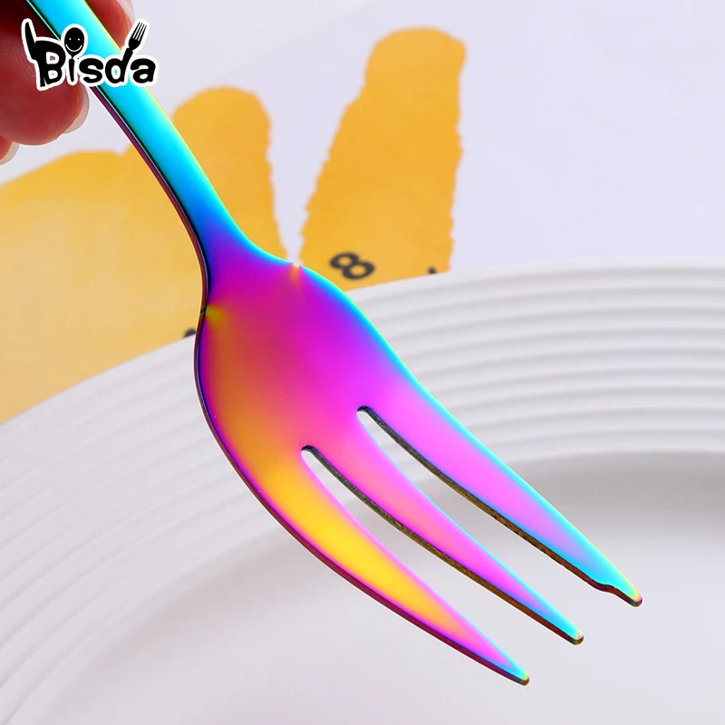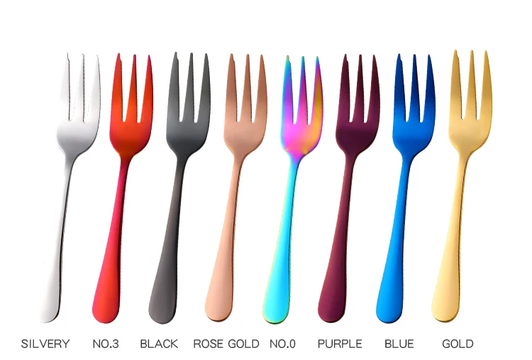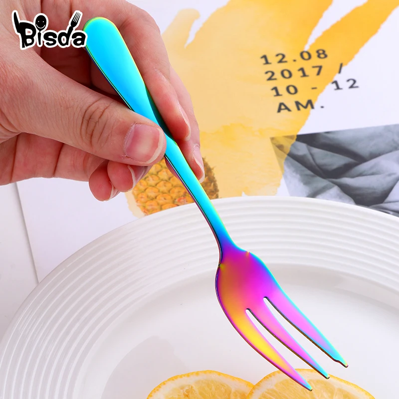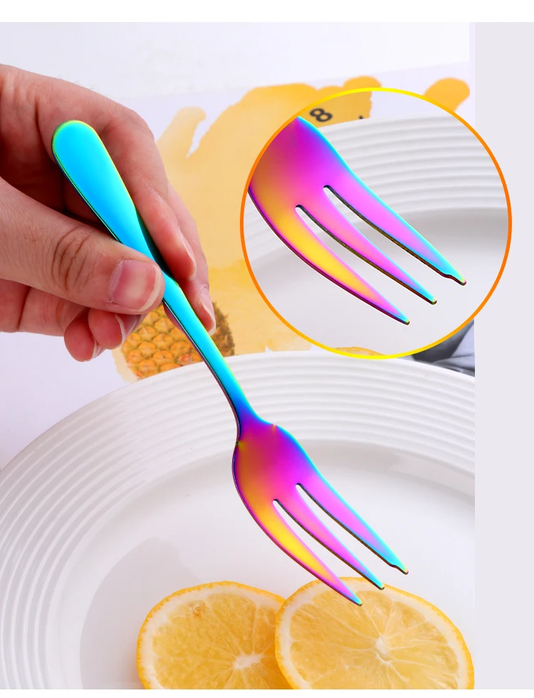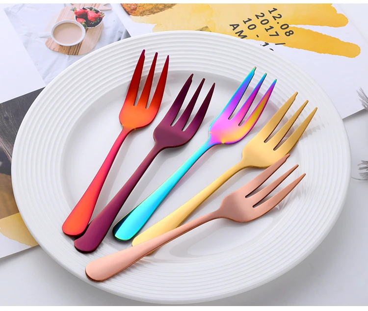 8 шт., вилки для торта, десертные вилки из нержавеющей стали, цветные чайные вилки, маленькие вилки радужной расцветки для фруктовых закусок, столовая посуда, вечерние принадлежности