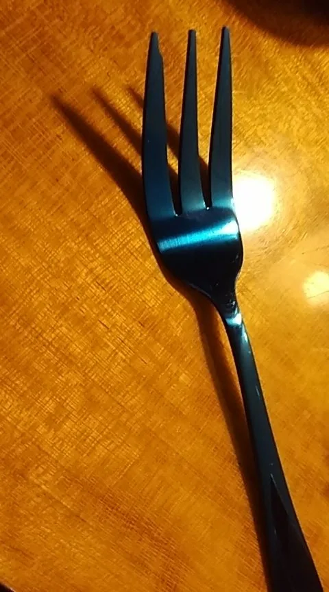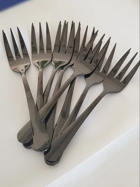 Они красивые и маленькие, как я и хотел. Я искала вилку для салата/десерта, это тот размер. Я угнала звезду, потому что это не тот цвет, который я ожидала, сначала она больше темно-серого, чем черная, и она не матовая. Это было то, что я думал, что получил. Я уже помыл их в посудомоечной машине дюжину раз и никаких проблем. Я хотел действительно использовать их, прежде чем оставлять отзыв, они отлично подходят для вилки и цвета.