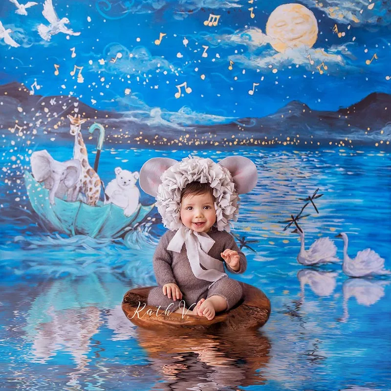 Фон для фотосъемки с изображением слона, маленькой звезды, луны, ра...