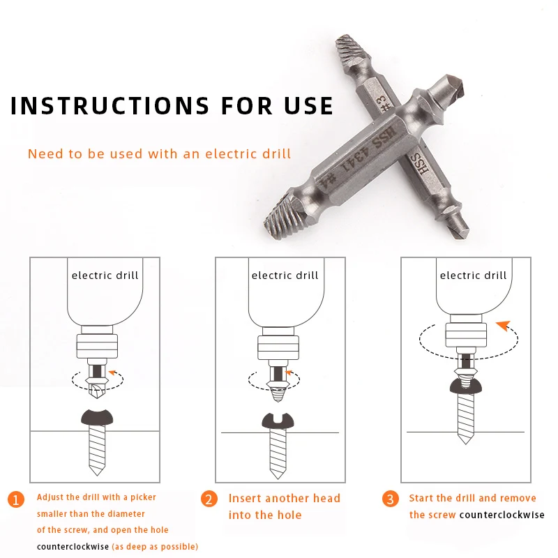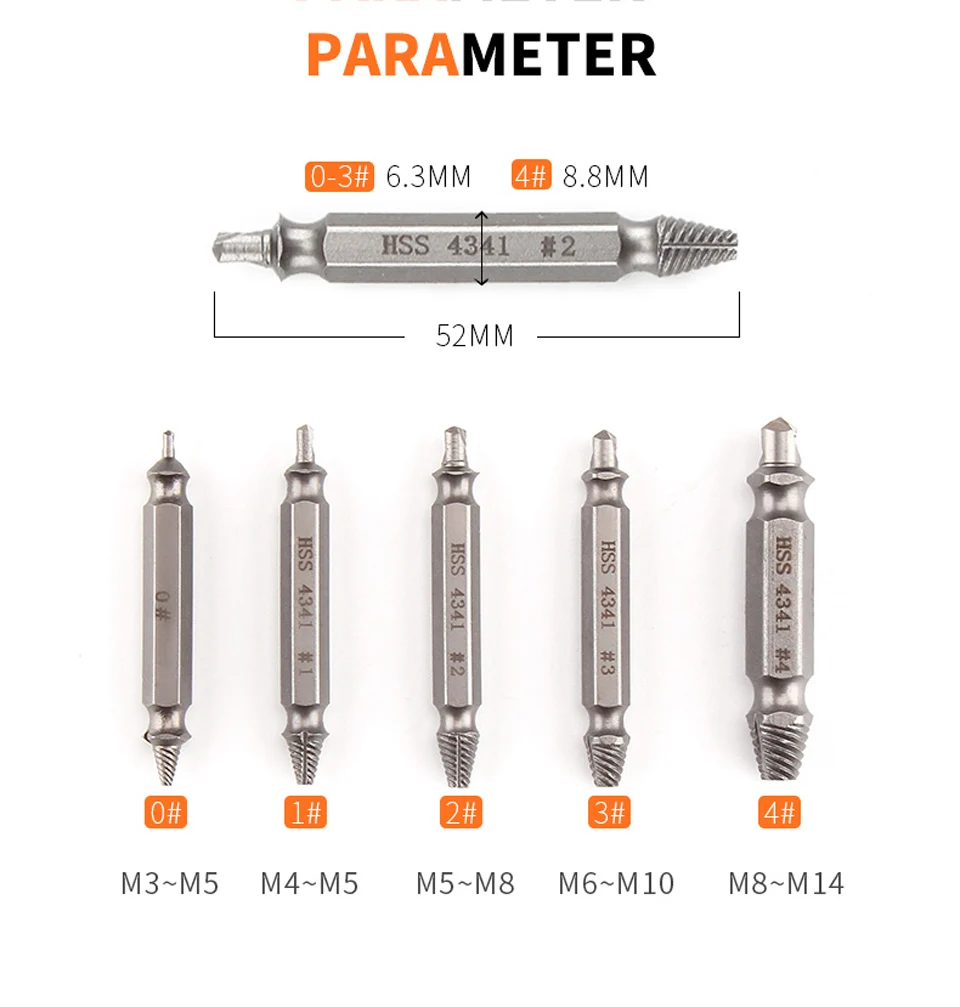 Набор из 5 шт., экстрактор поврежденных винтов, направляющая сверла, экстрактор поврежденных болтов, экстрактор винтов, легкое удаление, экстрактор болтов