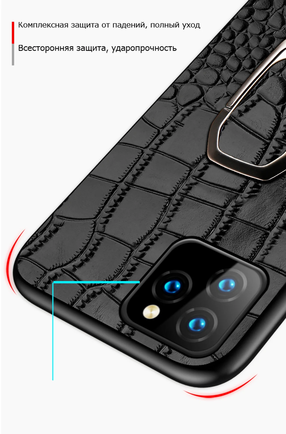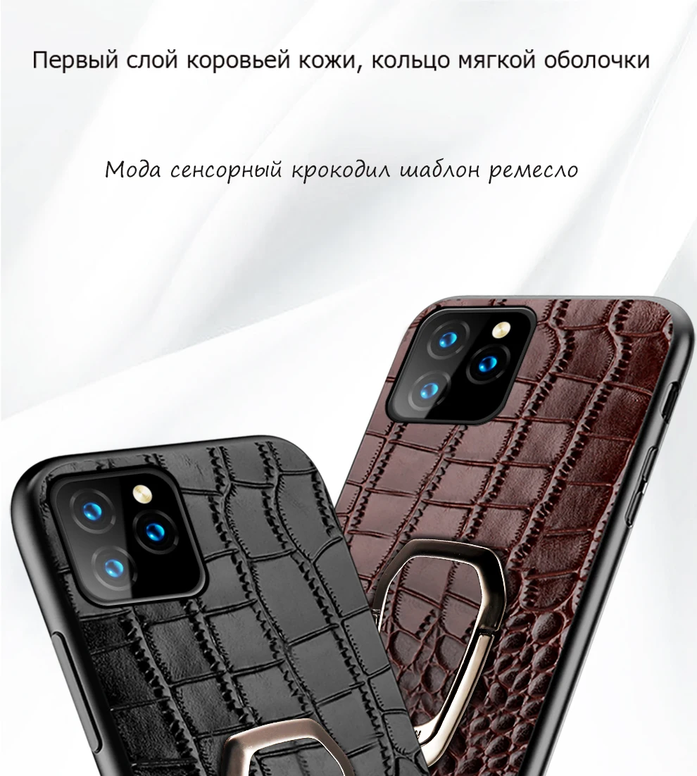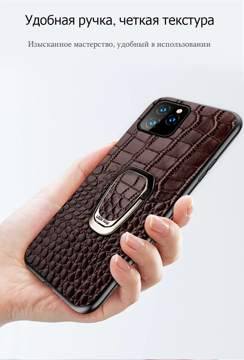 Чехол LANGSIDI с магнитным кольцом-держателем кожаный для телефона iphone 13 11 12 pro max 8 Plus X XS XR мужской противоударный чехол из натуральной кожи