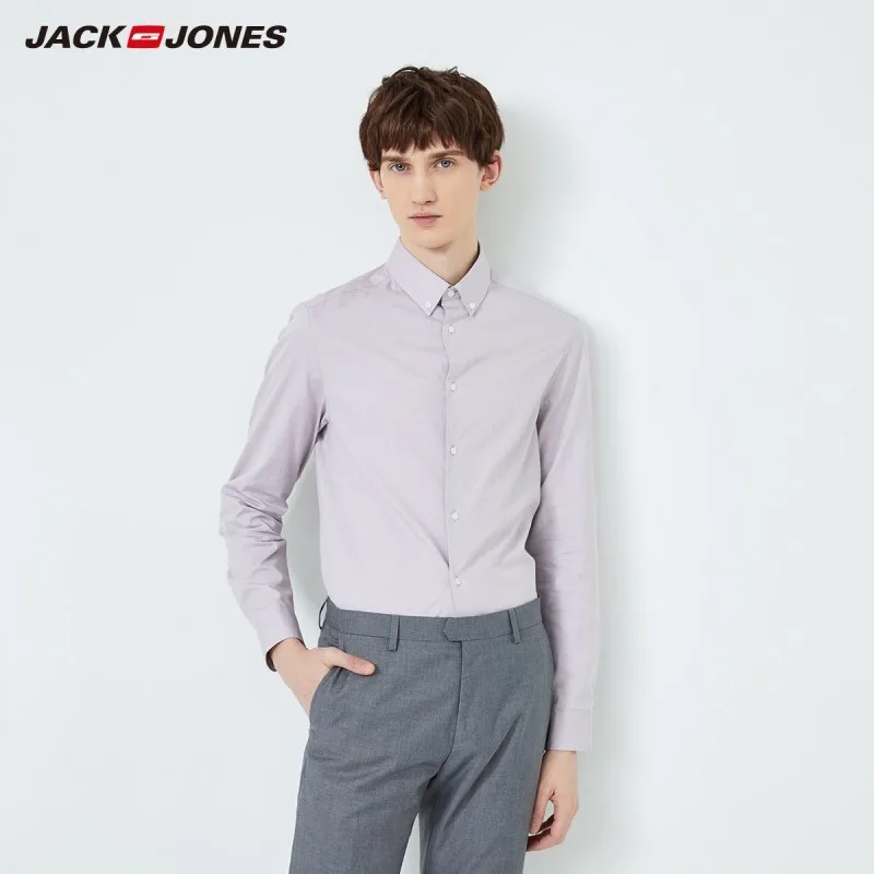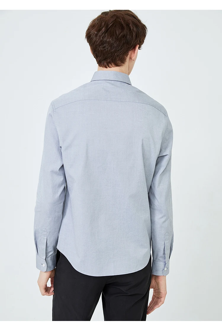 Рубашка мужская с отложным воротником, 100% хлопок, деловая Повседневная приталенная, с длинным рукавом, 219305524