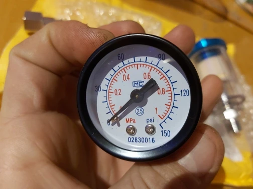 Доставили из России сдеком за неделю. Читал в отзывах, что лучше брать в местных магазинах, но посмотрев на ассортимент убедился, что продают тоже самое, но дороже на 500-700 руб. Манометр точностью не отличается, ноля нет и по верхней границе отличие от показания компрессора больше на пол мРа. Барашек люфтит, затяжка болтика помогает, но лучше чем то уплотнить. Пользоваться можно, продавцу спасибо!
