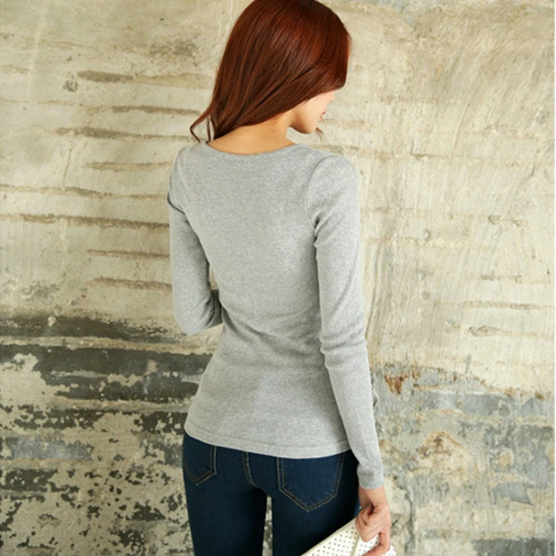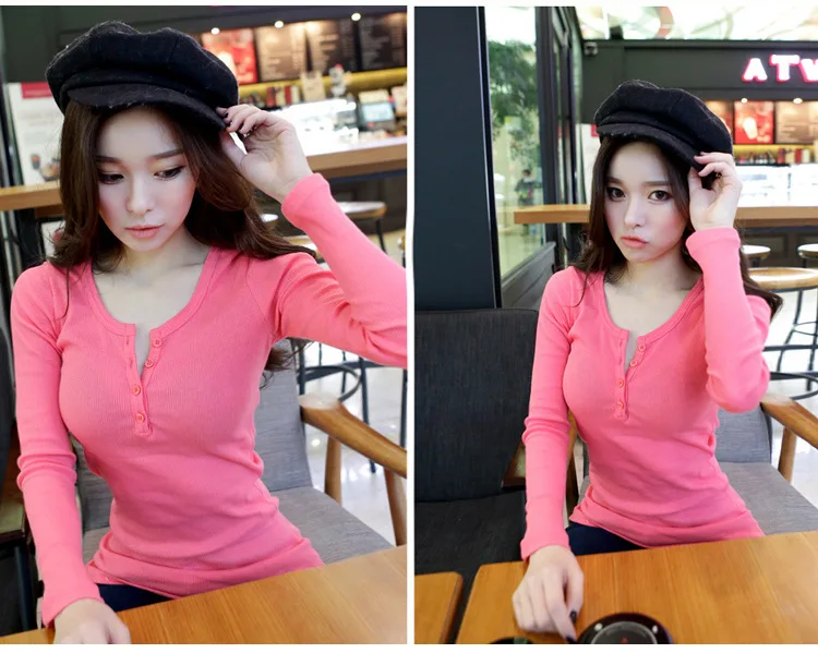 Сексуальная Женская рубашка с V-образным вырезом, облегающая однотонная Базовая рубашка с длинным рукавом и пуговицами, Женская обтягивающая футболка на бретелях, женские топы