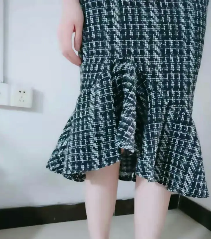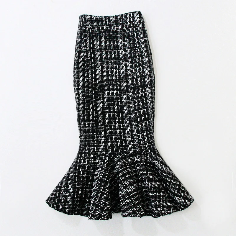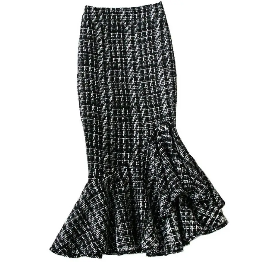 Женская твидовая юбка с высокой талией, маленькая шерстяная юбка в клетку, зимняя облегающая юбка, размеры до 4XL