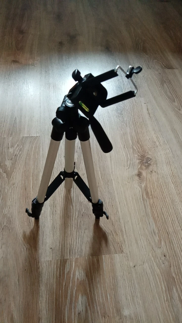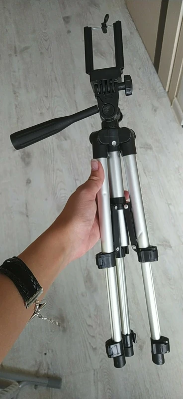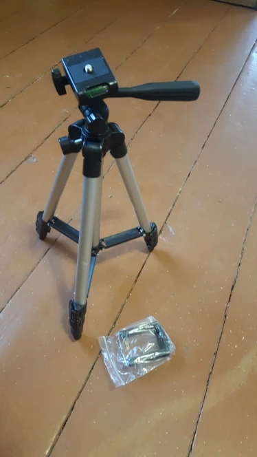 Нормальный штатив за такие деньги. В комплекте ещё один маленький штатив и два крепления для телефона. Слегка хлипковат, но для статический съёмки самое оно. Маленький, компактный - это плюс. Пришёл довольно быстро.