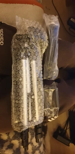 Трипод вполне функционален, телефон держит уверенно, но вот незадача, пришел он мне, обернутый одним мешком пузырей, как переводчик называет пупырку. Из-за плохой упаковки и не самой лучшей службы доставки (5post), ну Пятерочка это, словом, играя моей посылкой то ли в хоккей, то ли в гольф, оставили на ногах трипода неизгладимые вмятины. Теперь прочность его не та. Али (не продавец) вернул мне 50% фактически уплаченной суммы (314 от 628р). И на том спасибо.
