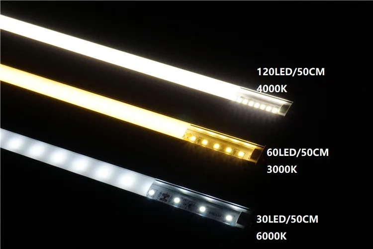 Чем больше светодиодов на метр, тем ярче лампа30/50 см диод легко заметен с молочной крышкой60 светодиодов/50 см, Диод все еще виден, но не четкий129led/50 см диод незаметенЧем больше диодов, тем больше лампы нагреваются, для близкого пространства мы предлагаем 30/60 светодиодов на лампу