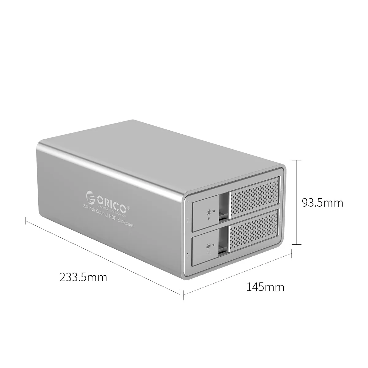 Док-станция ORICO 95, 2 отсека, 3,5 дюйма, USB3.0-SATA, алюминиевый корпус для жесткого диска RAID, 78 Вт, чехол для внешнего жесткого диска