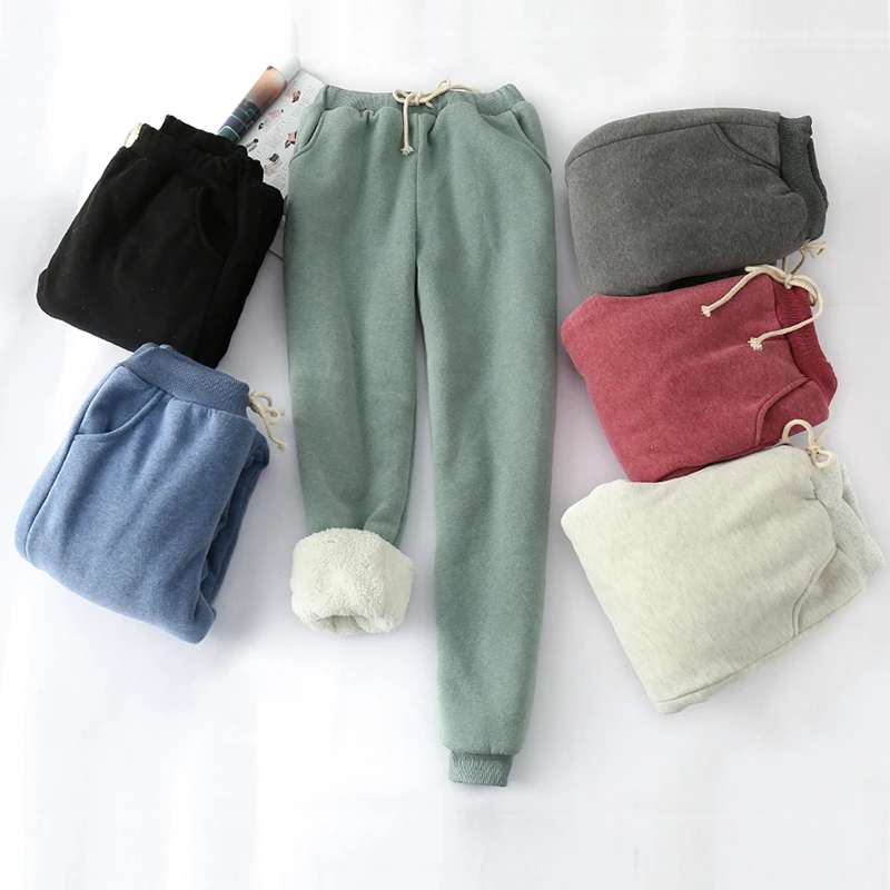 Зимние женские тренировочные брюки из овечьей шерсти 2020, однотонн...