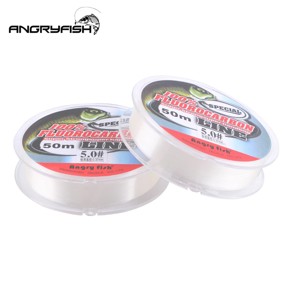 Фторуглеродная рыболовная леска Angryfish, 50 м, прозрачная и розовая, сверхпрочная, износостойкая