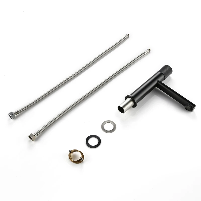 Смеситель для раковины, матовый черный, 15 см, для горячей и холодн...