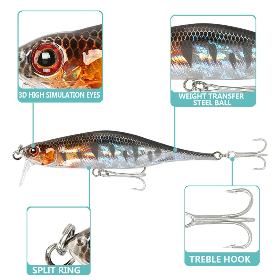 1 шт., рыболовная приманка в виде гольяна, лазерная яркость, 3D-глаза, 10 см, 11,74 г, рыболовные воблеры, кренкбейт, светящиеся гольяны