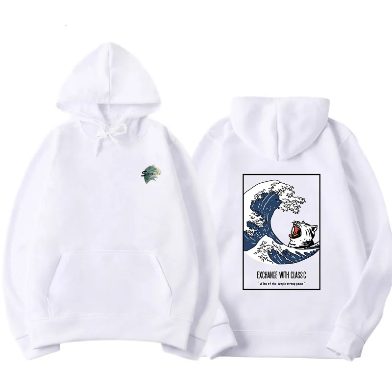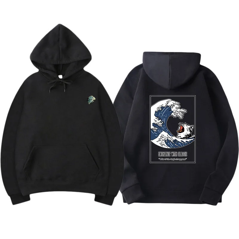 Прямая доставка японский забавный кот с волнистым принтом флисовые толстовки 2019 зима Япония стиль хип хоп повседневные толстовки уличная