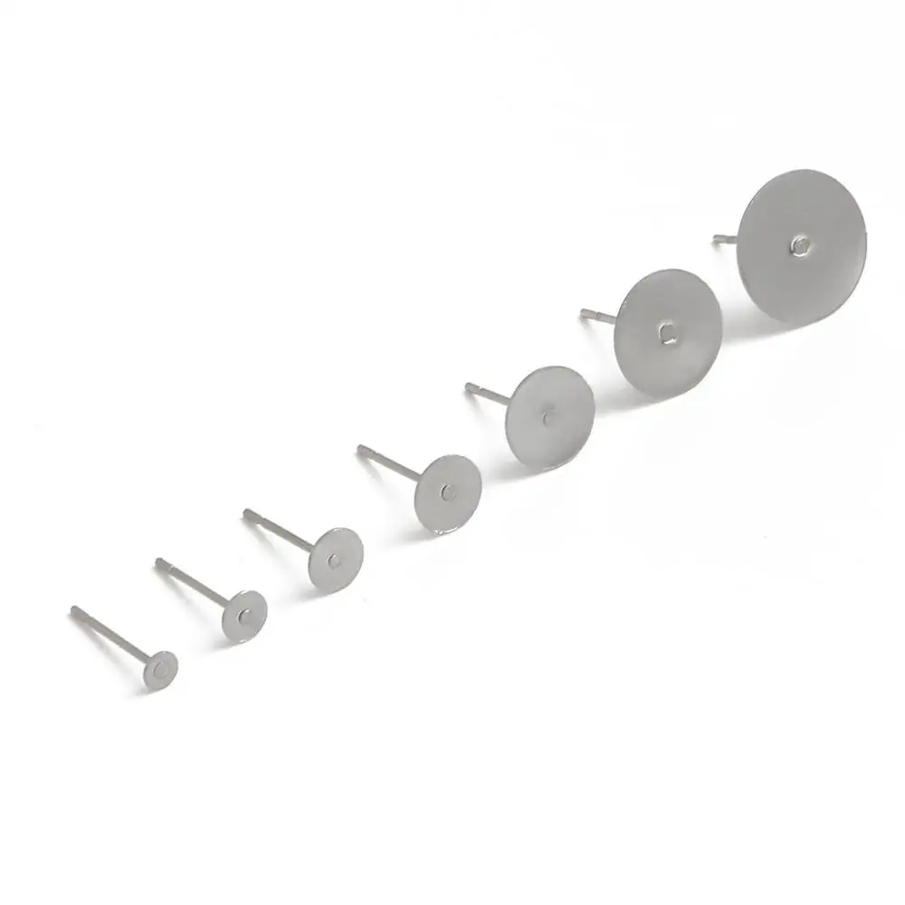 100-200 шт., круглые плоские серьги-гвоздики из нержавеющей стали