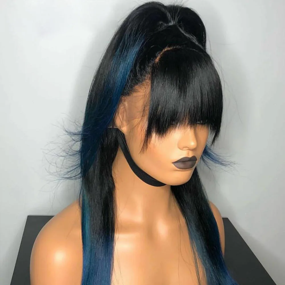 Бесклеевой парик Голубой с эффектом омбре 13x4 перуанский Синтетические волосы на кружеве человеческих волос парики с челкой предварительно Remy бахрома парик 1Bt30 Full Lace 360 парики