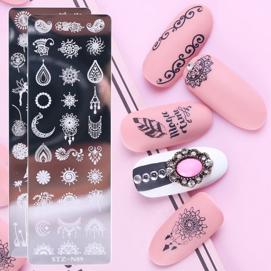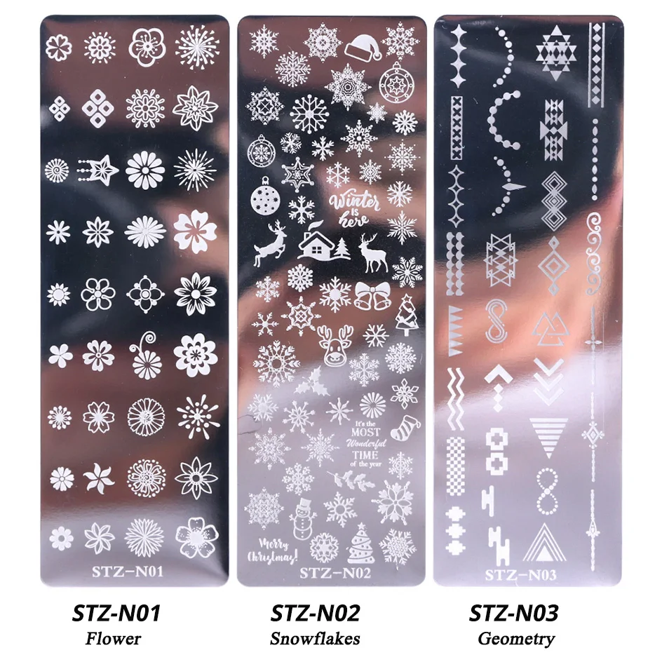 Трафарет для стемпинга ногтей, в виде снежинки, бабочки, геометрический дизайн, CHSTZN01-12-1