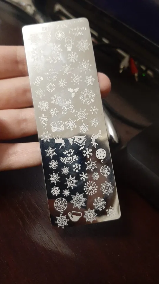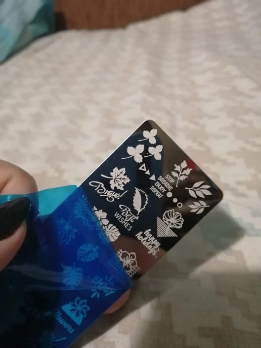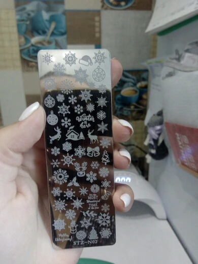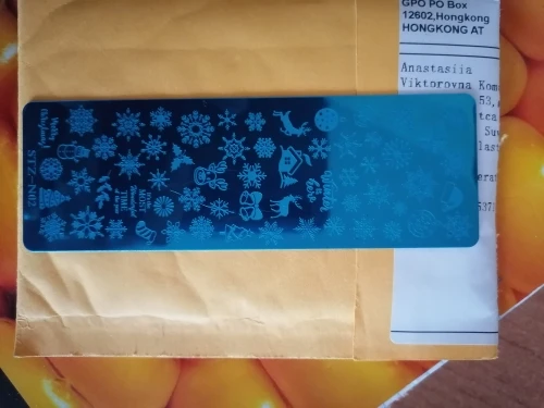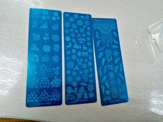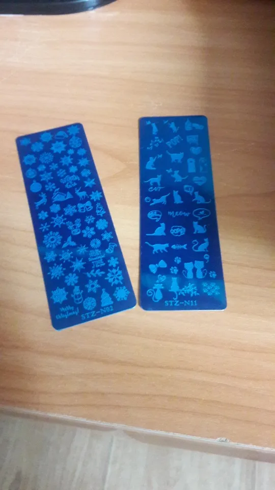 Заказ шёл долго,27.11 заказала пришел только 22.01. Так пришло всё в целостности, хорошо упаковано. Рисунок на пластины средние на маленькие будет большой рисунок. Отпечатывается хорошо. Мне понравилось.