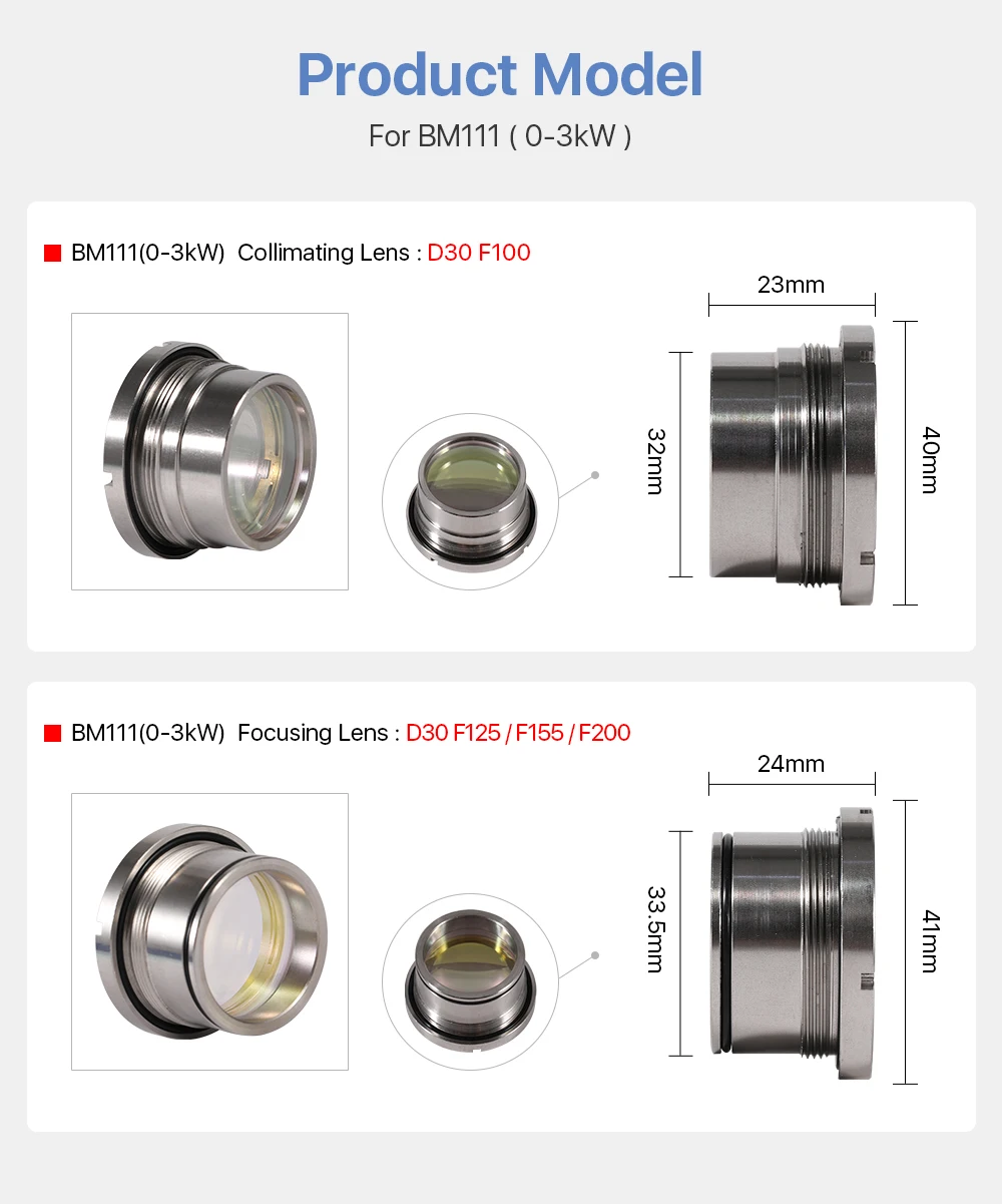 Фокусирующая линза Cloudray BM111 0-3 кВт D30 F100 f125мм с держателем объектива для лазерной режущей головки Raytools BM111