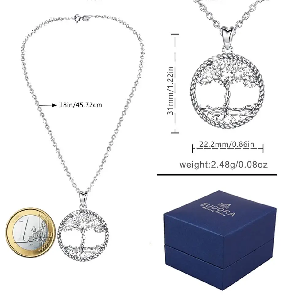 Подвеска Древо жизни EUDORA, ожерелье из стерлингового серебра 925 пробы с листьями дерева и ожерелье богини, Винтажные Ювелирные изделия с коробкой D475