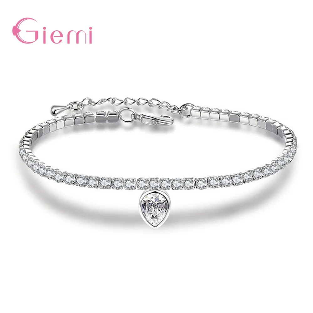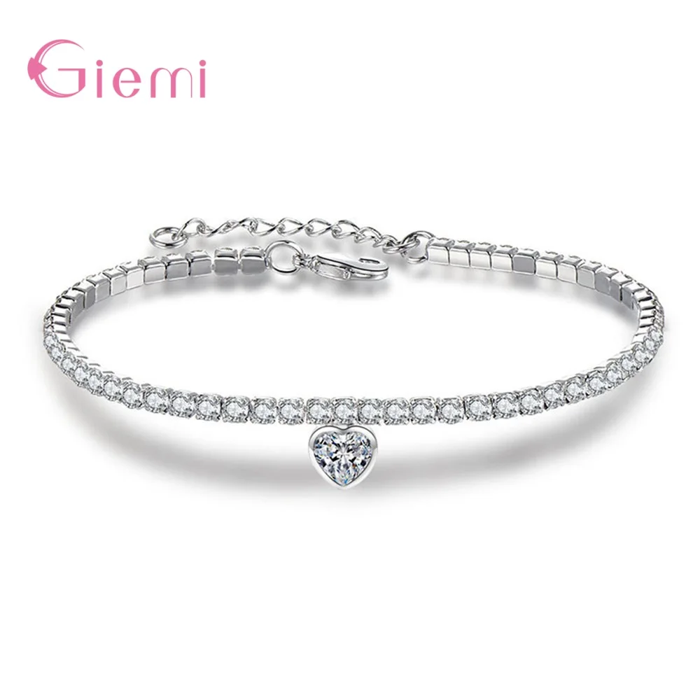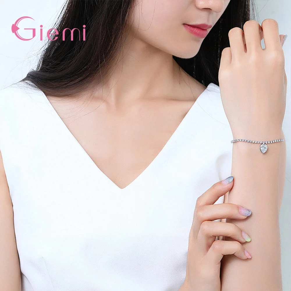 Женский браслет из серебра 925 пробы с кубическим цирконием класса ААА, элегантные браслеты с кристаллами в форме сердца, свадебные украшения для подарка