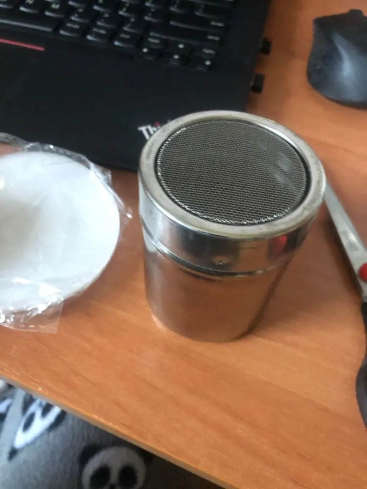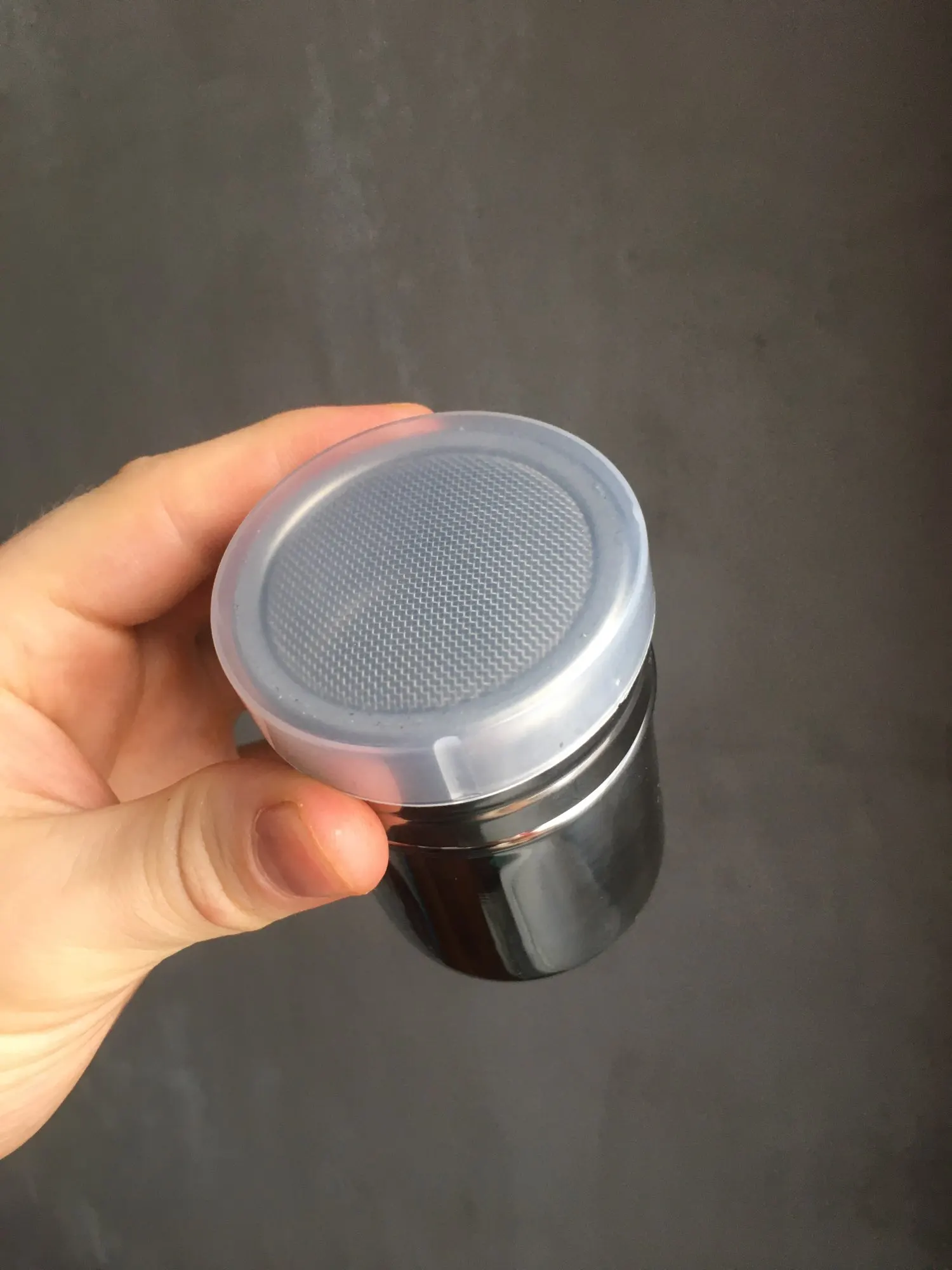 качество достойное,удобно для руки,ситечко мелкое,для корицы,для сахарной пудры подходит,пользуемся месяц,треснула крышечка из пластика,но это не критично,функцию выполняет свою,рекомендую.