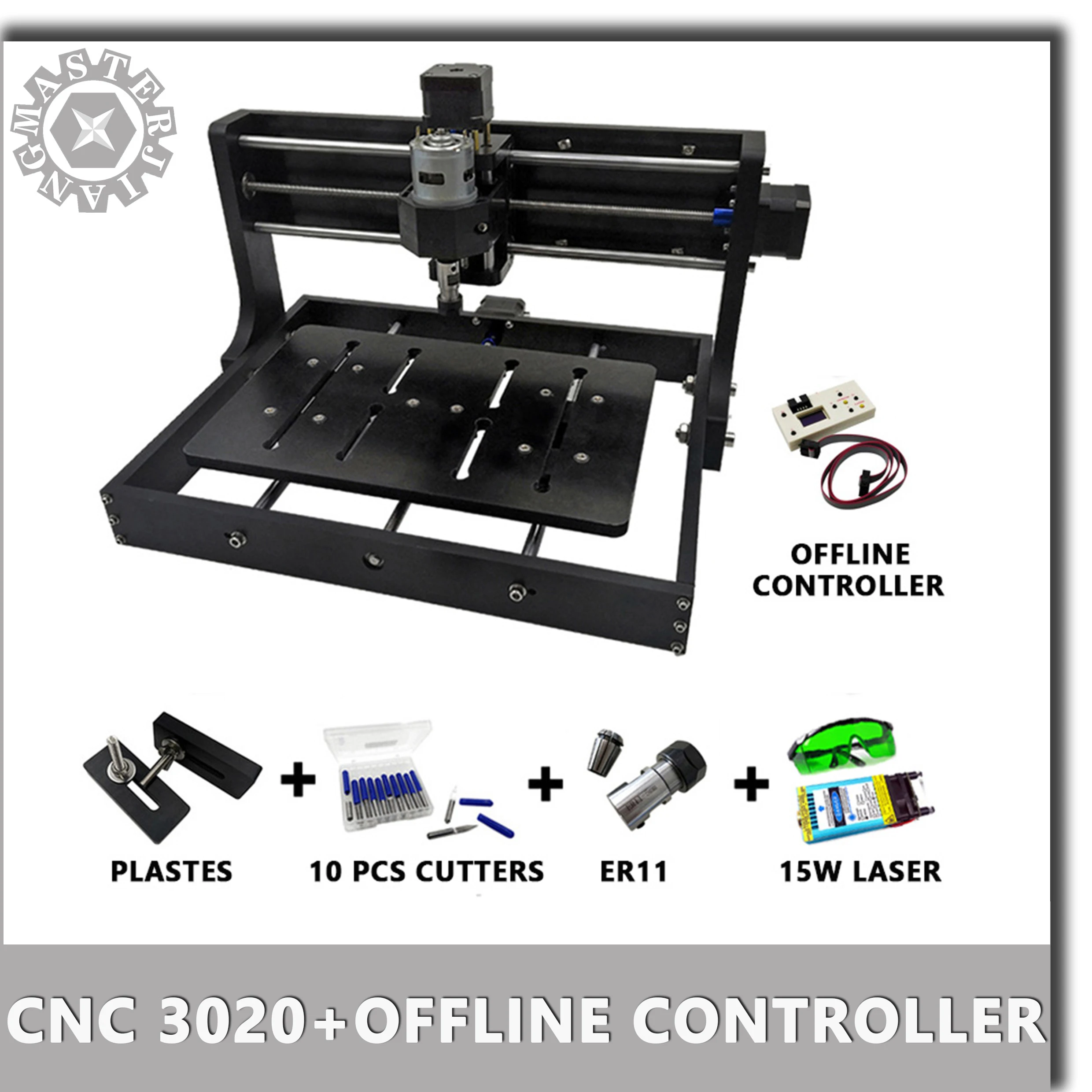 15 Вт, 1 дюйм:1 комплектCNC 3020 гравировальный станок +Лазерный модуль 15 Вт с защитными очками, 1 комплект+1 комплект 1 дюймовый Автономный контроллер (с sd-картой)