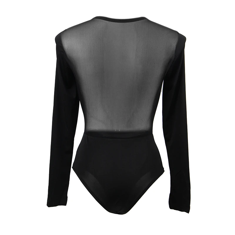 Женское боди с длинным рукавом, комбинезон, Клубная одежда, топы, сексуальное черное кружевное прозрачное боди на пуговицах для зрелых женщин