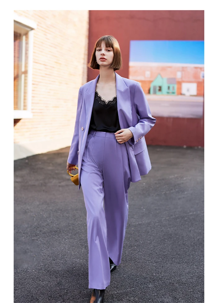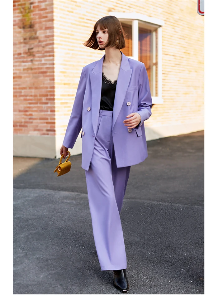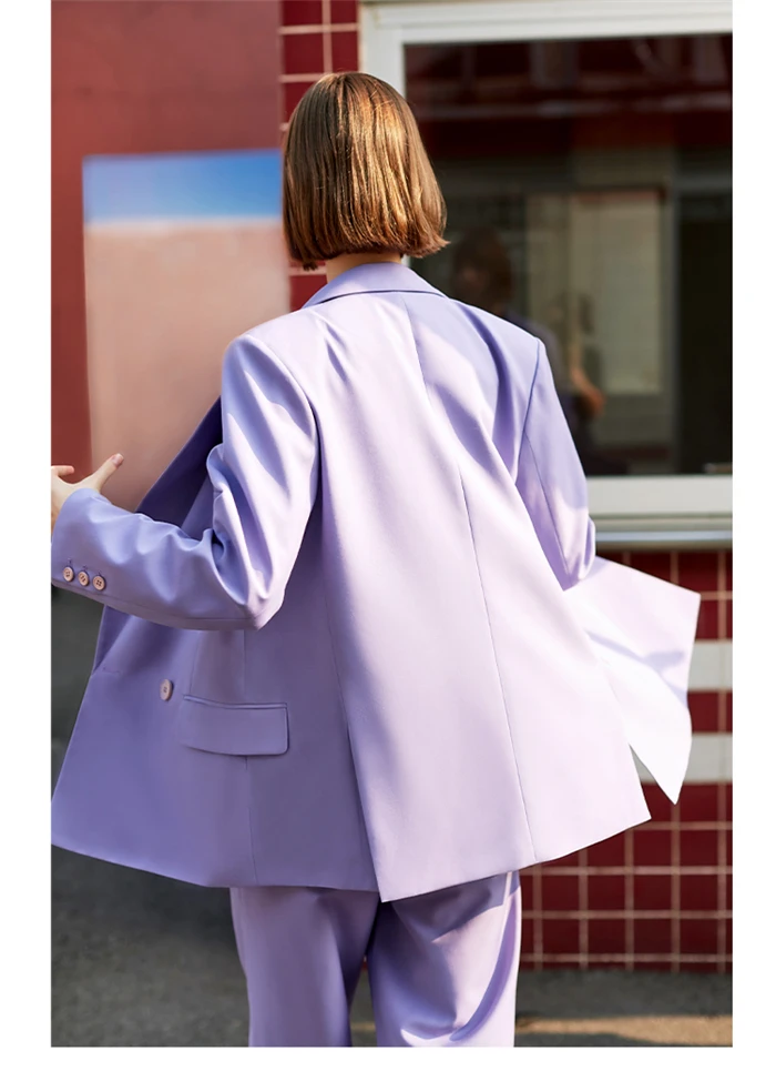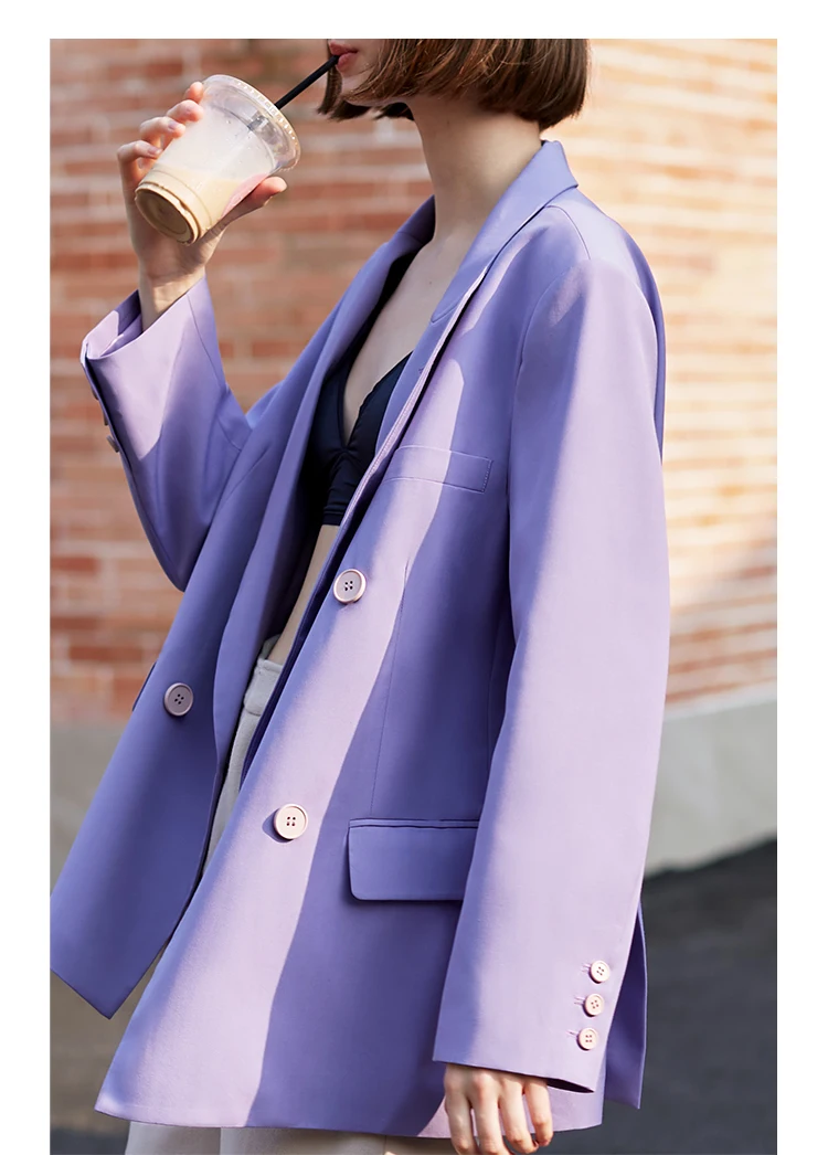 Пиджак женский весенне-осенний, фиолетовый, с отложным воротником