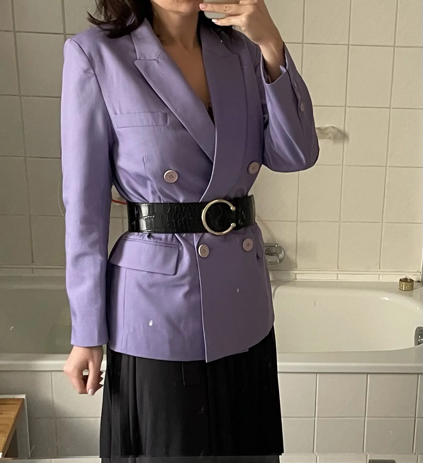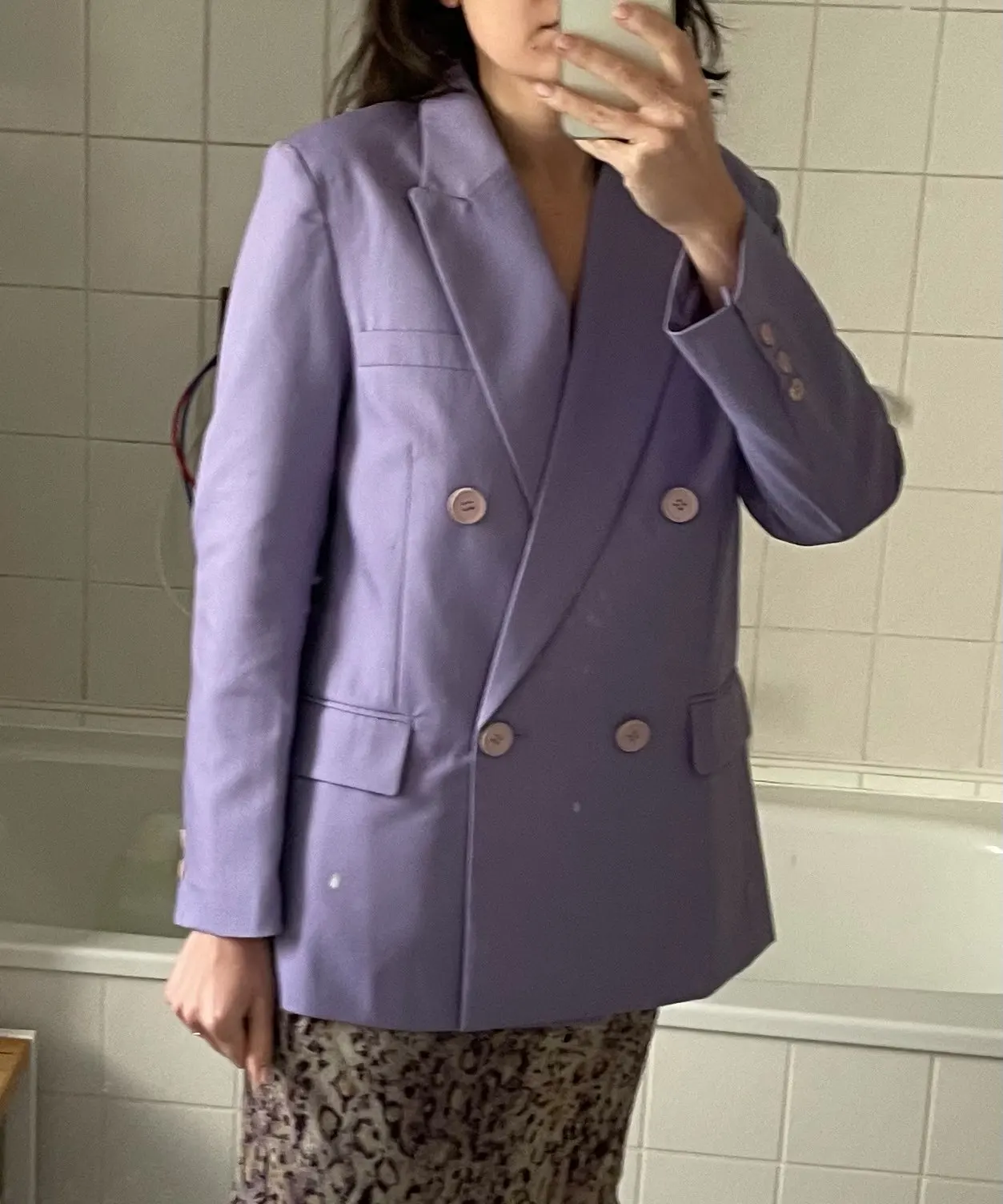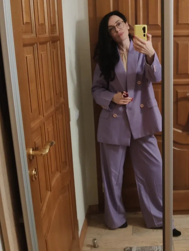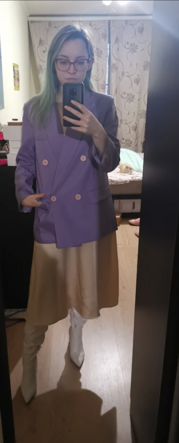Пиджак очень красивый, цвет невероятный. Сделан качественно. На свой российский 44 р-р взяла М, получился прям хороший оверсайз. На рост 174 рукав просится подлиннее, но, как ни странно, куце не смотрится. В принципе, размерной сетке соответствует, видели глазки, что заказывали)). Чуть позже, когда отпарю, добавлю фото.