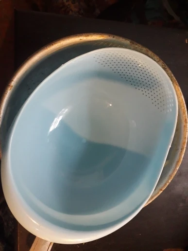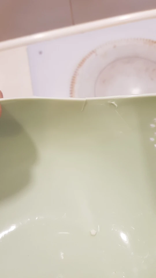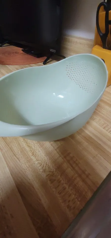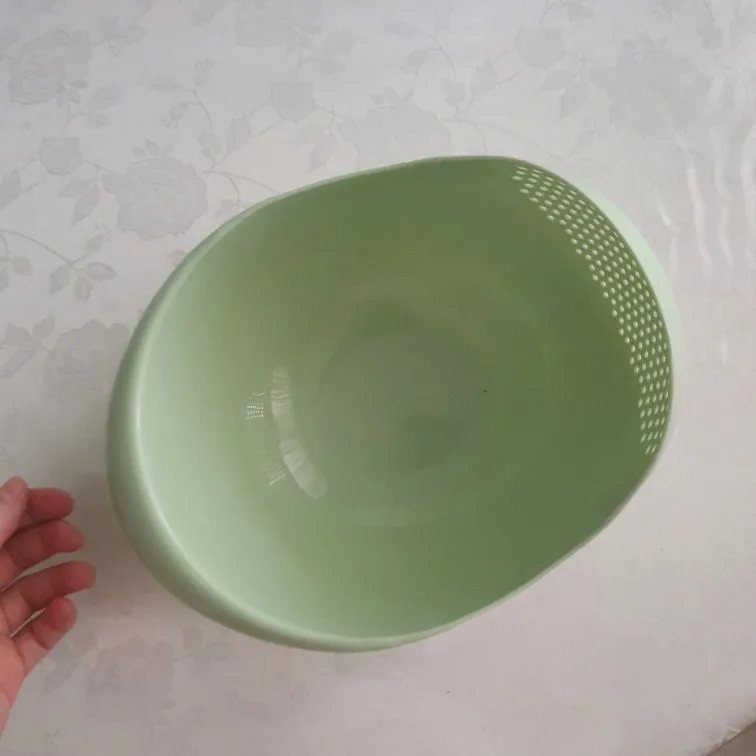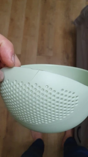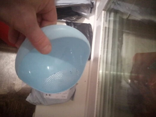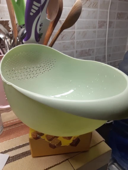 Выглядит очень окуратно.Думала оно будет по объёму больше,как советские обычные дуршлаки но не уточнила размер у продавца.Но перемыть,рис и гречку,подойдёт.Есть не большая трещина где дырочки но думаю заклею.Дуршлаг специально поместила в старый для сравнения.
