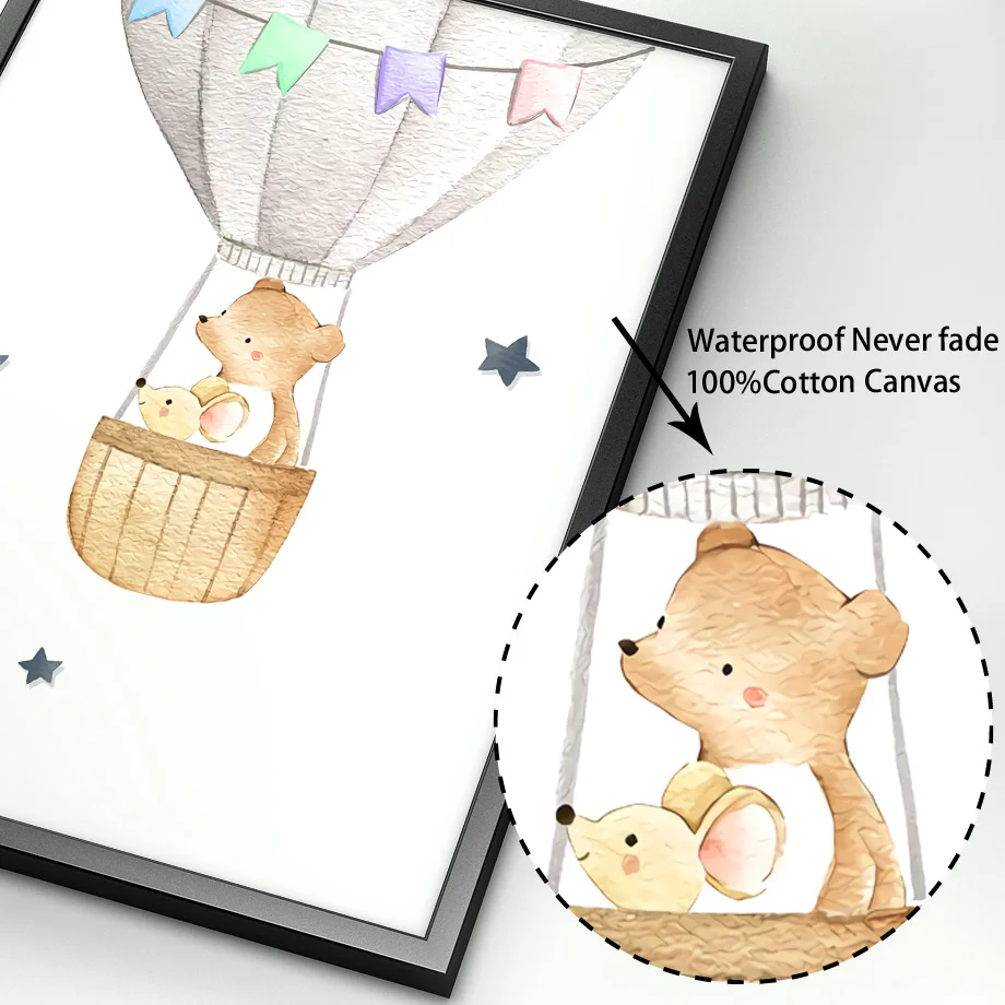 Акварель Медведь Кролик лиса собака мальчик девочка детская настенн...