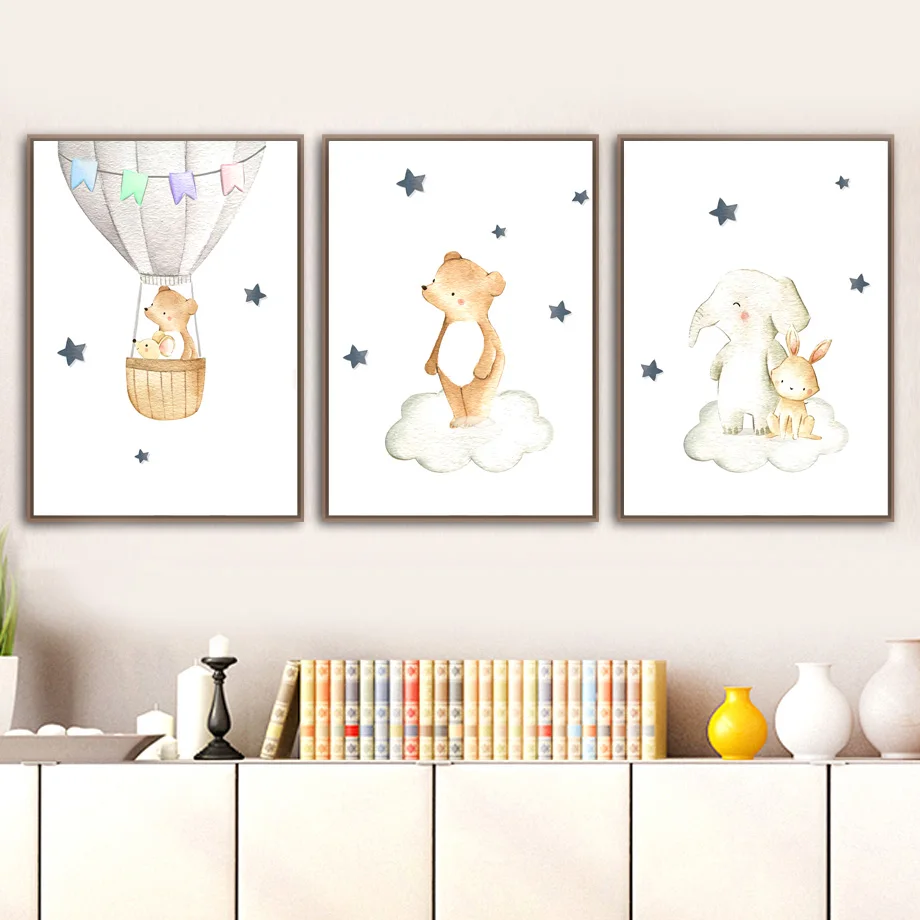 Жираф Медведь Кролик Слон настенная живопись холст скандинавские по...