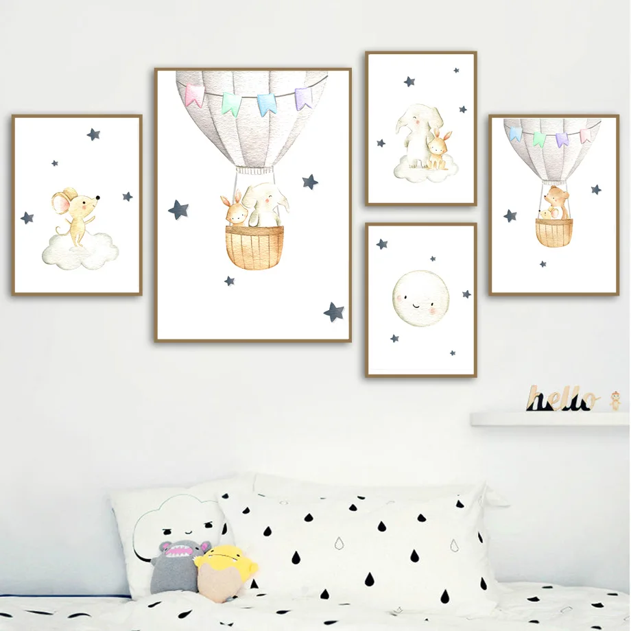Милый мультяшный слон, звезда, луна, детский настенный художественн...