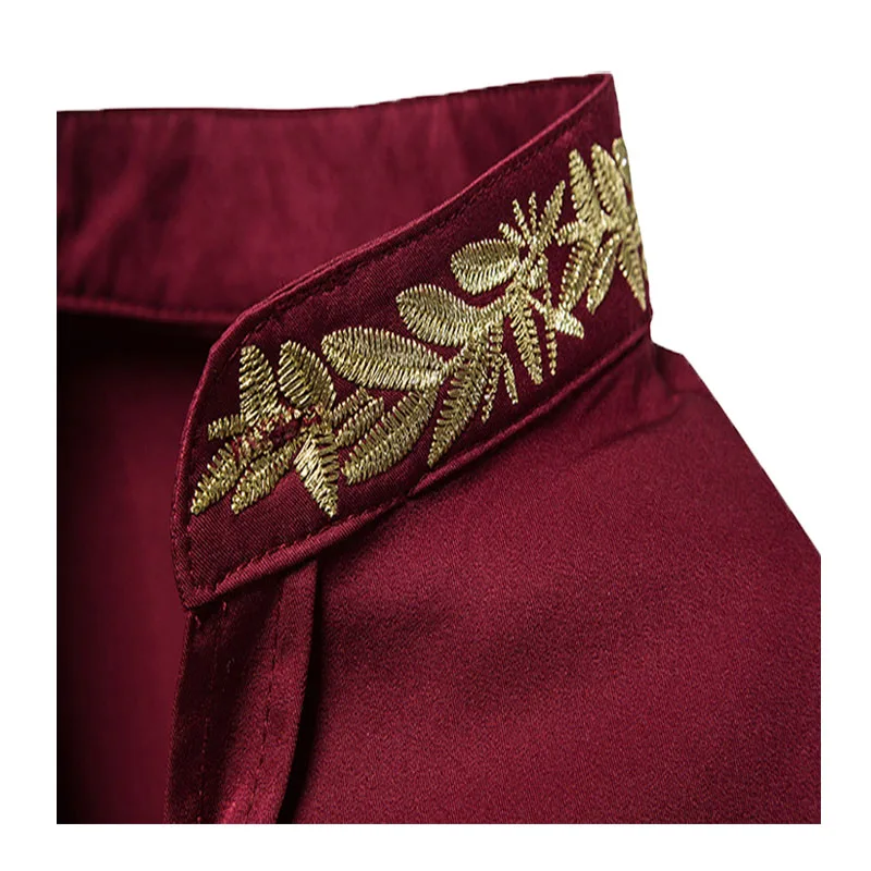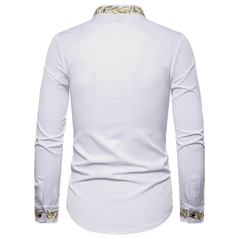 Мужская рубашка с золотой вышивкой, Повседневная приталенная рубашка с воротником-стойкой и длинными рукавами, осень 2019