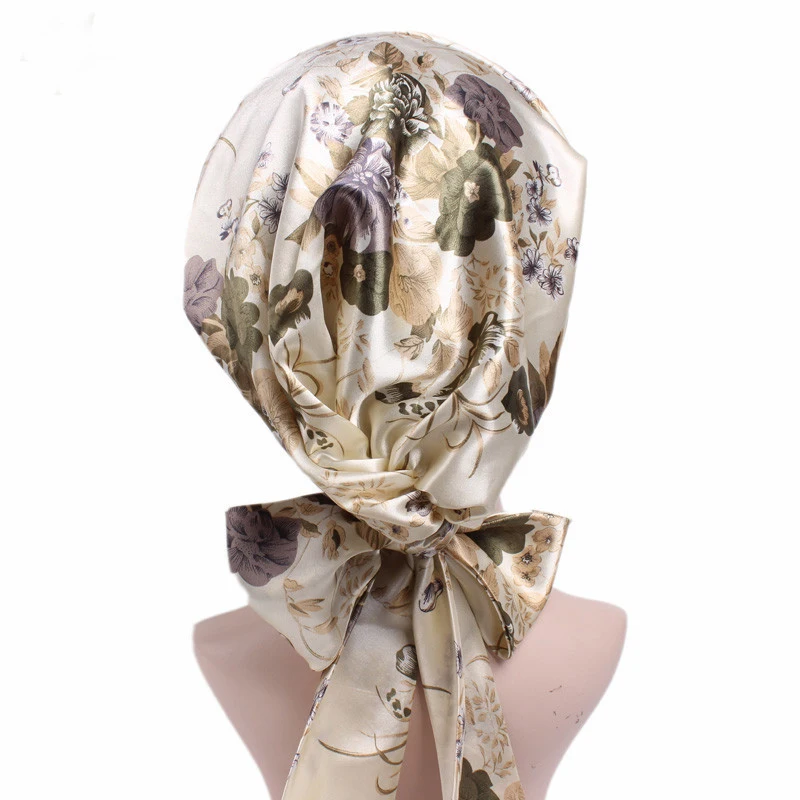 Платок женский атласный с цветочным бантом, мягкий, 2020, шапочка д...
