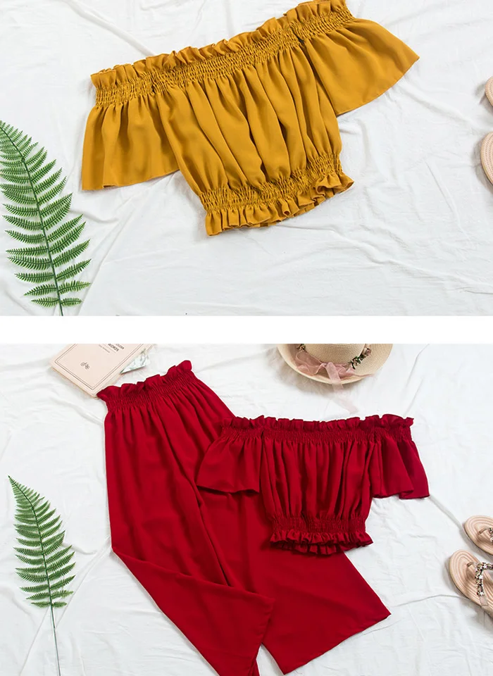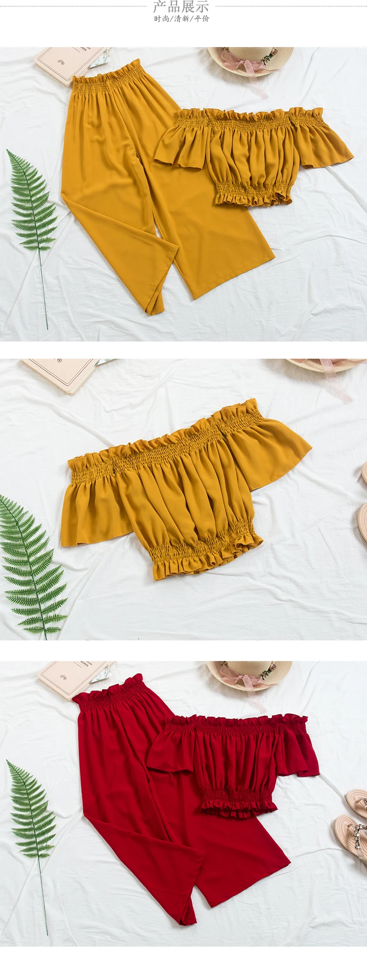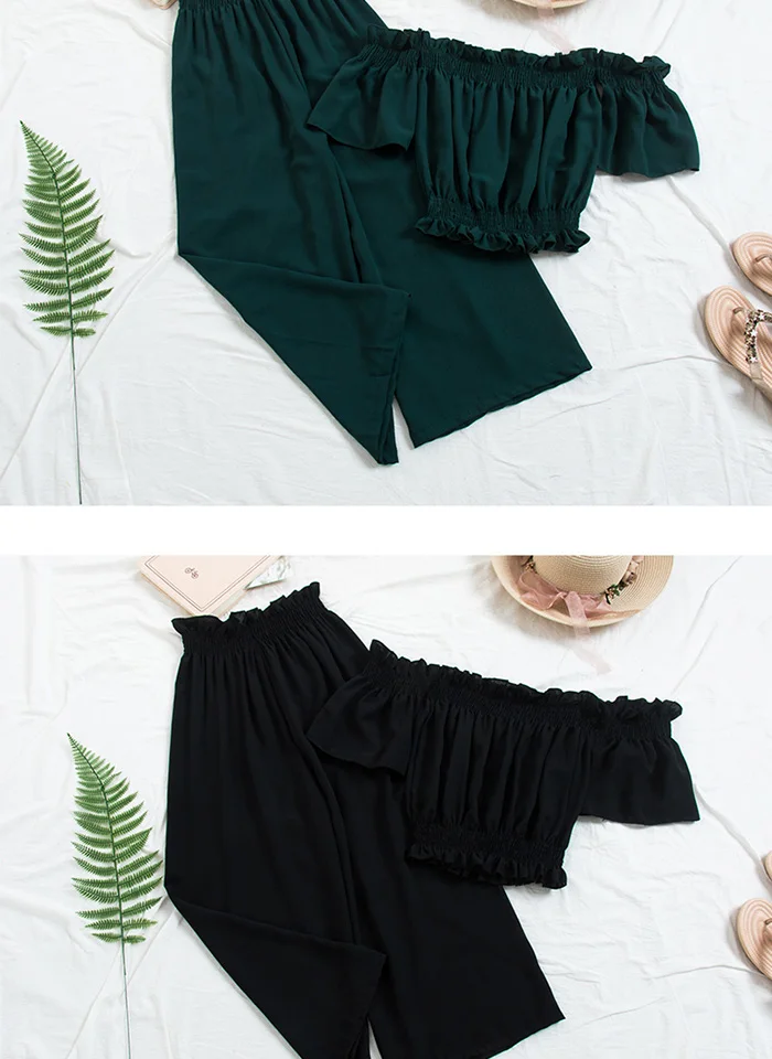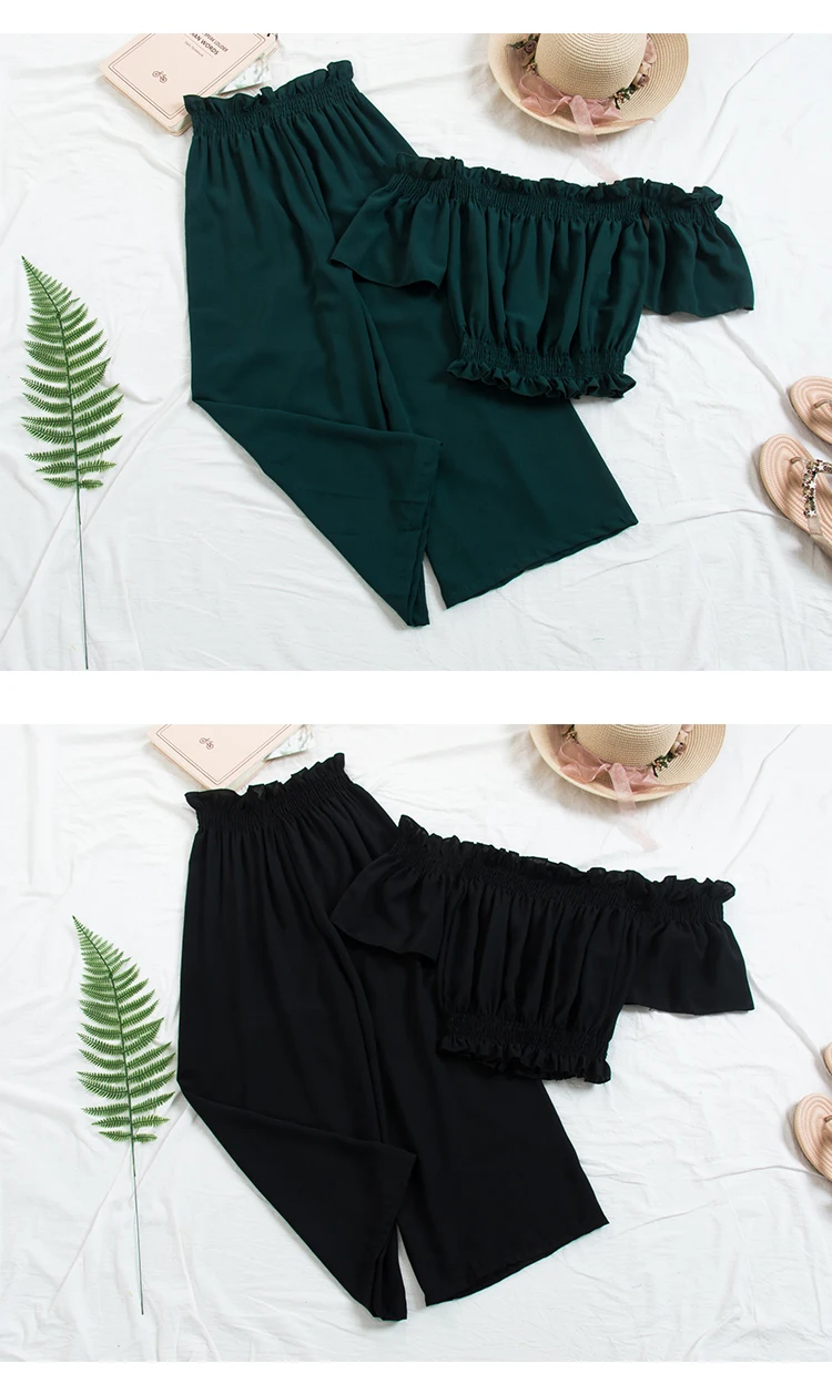 Женские брюки с высокой талией Heliar, блузка с вырезом лодочкой и принтом, комплекты из двух предметов, лето 2020, комплект из двух предметов, топы и штаны