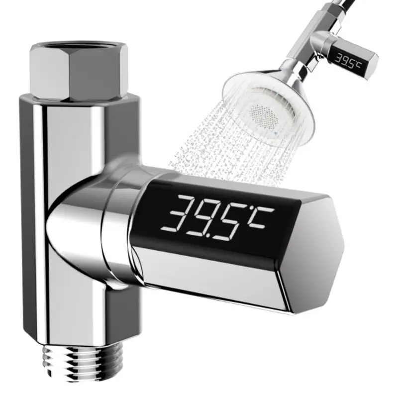 Разработан светодиодный ным дисплеем, который поможет вам контролировать температуру воды в режиме реального времени, чтобы вы всегда могли принимать душ с подходящей температурой воды, что особенно хорошо для младенцев и пожилых людей. Также используется давление воды для генерации тока, батарея не требуется. Совместим с большинством душевых кабин.
