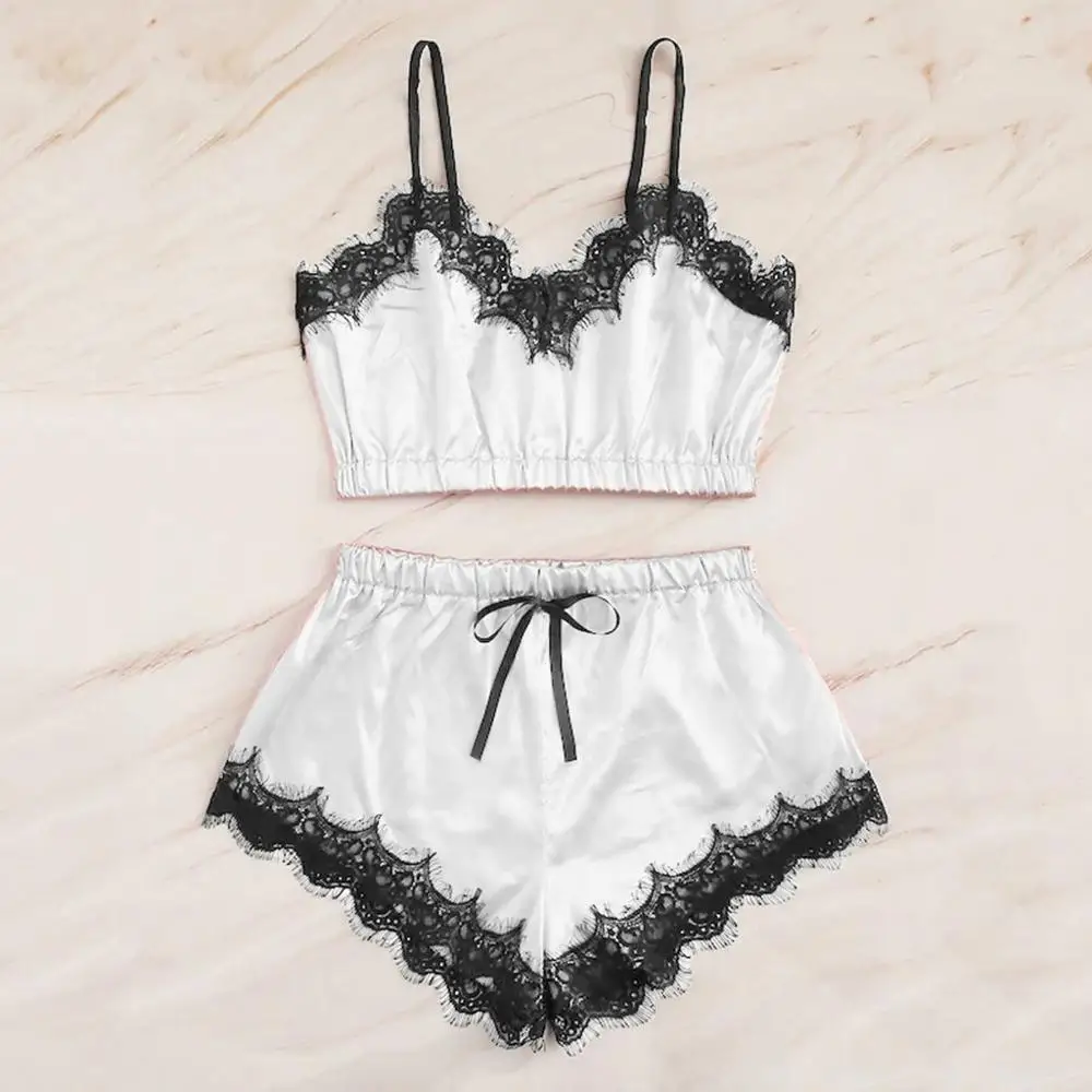 Женский атласный Шелковый пижамный комплект с бантом Женский комплект Бандаж для пижамы домашний костюм летняя мода ночная рубашка розовый