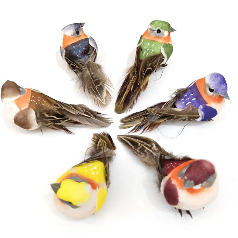 Мини Искусственные Птицы, искусственные перья, пенопластовые гвоздики, свадебное украшение, украшение