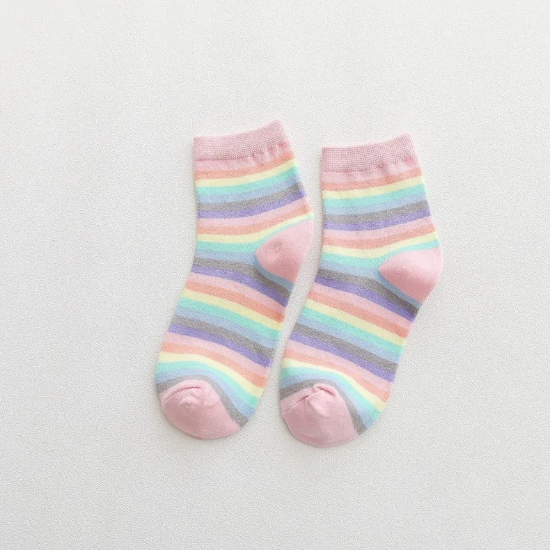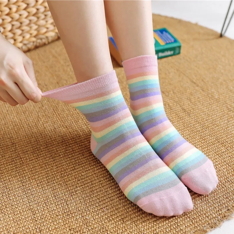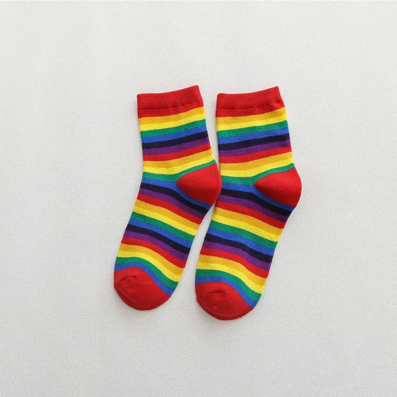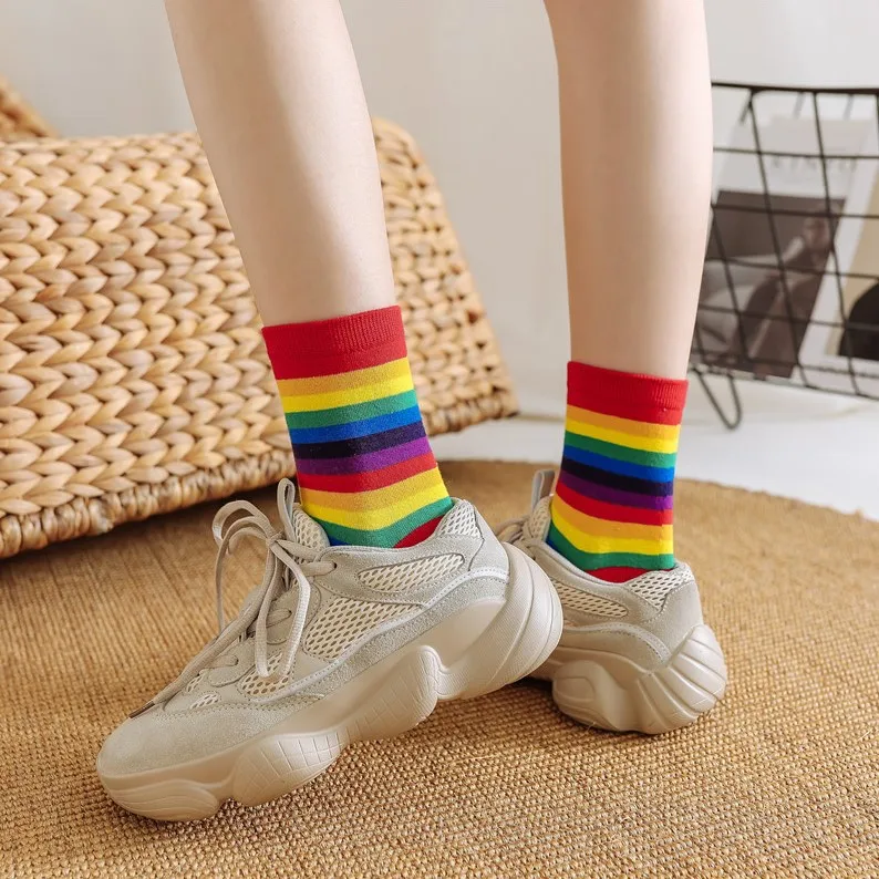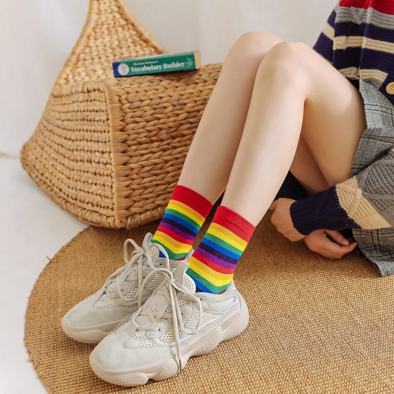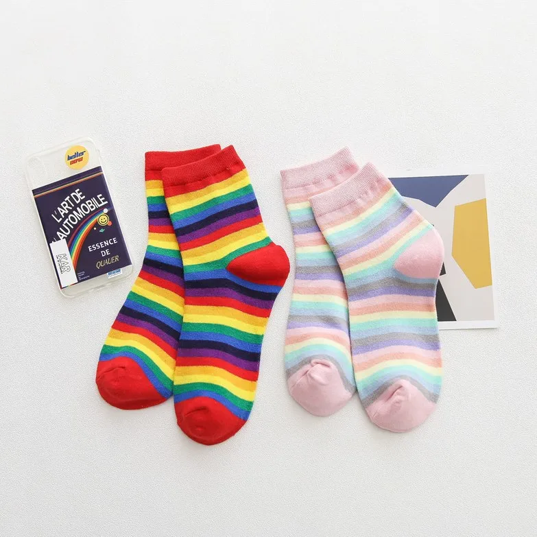 Женские Длинные хлопковые носки, осенние носки в радужную полоску с принтом, новинка 2019