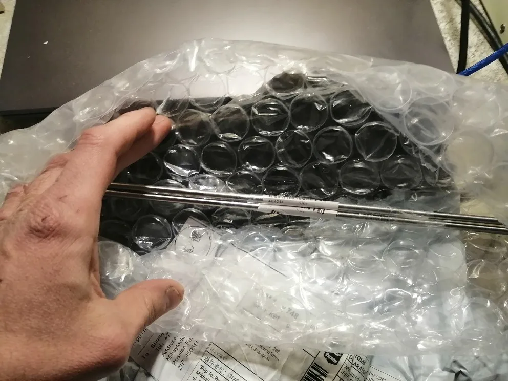реактивная доставка, буквально 10 дней до Москвы. Упаковка отличная, все в толстой пупырке, но валы 2.5 приехали гнутыми, что не удивительно по из диаметру...