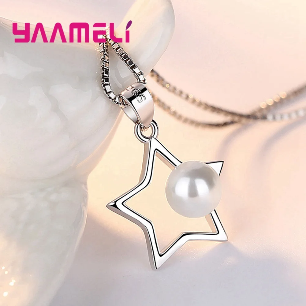 Красивая пятиконечная звезда, ювелирное изделие из стерлингового серебра 925 пробы, металлическая подвеска с белым жемчугом, ожерелье для леди, украшение для свидания
