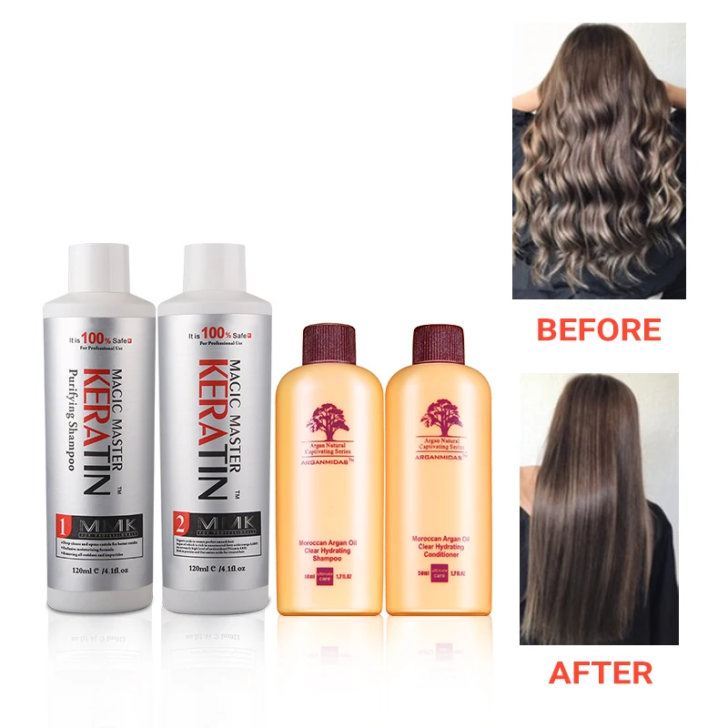 Лучшие продажи без формалина восстановления поврежденных и выпрямление волос 120 мл волшебный мастер кератин + 120 очищающий шампунь + дорожный костюм