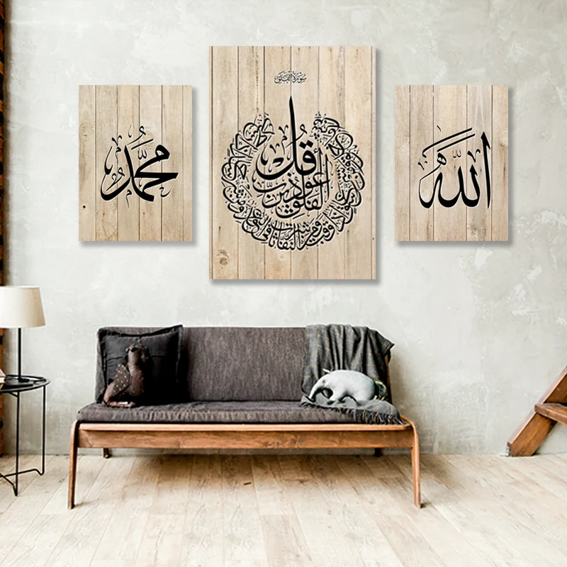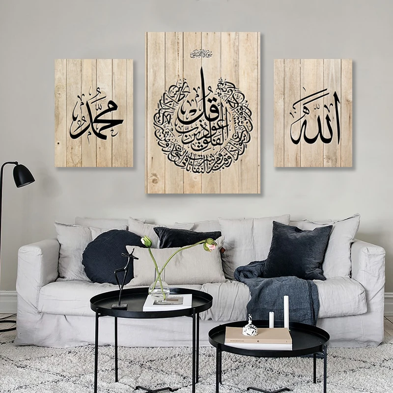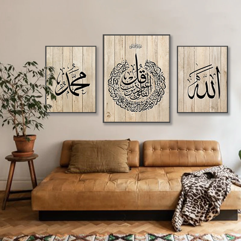 Винтажный фон из исламского дерева AL KURSI, Картина на холсте, плакат для интерьера, мусульманские рисунки, декор для гостиной и дома