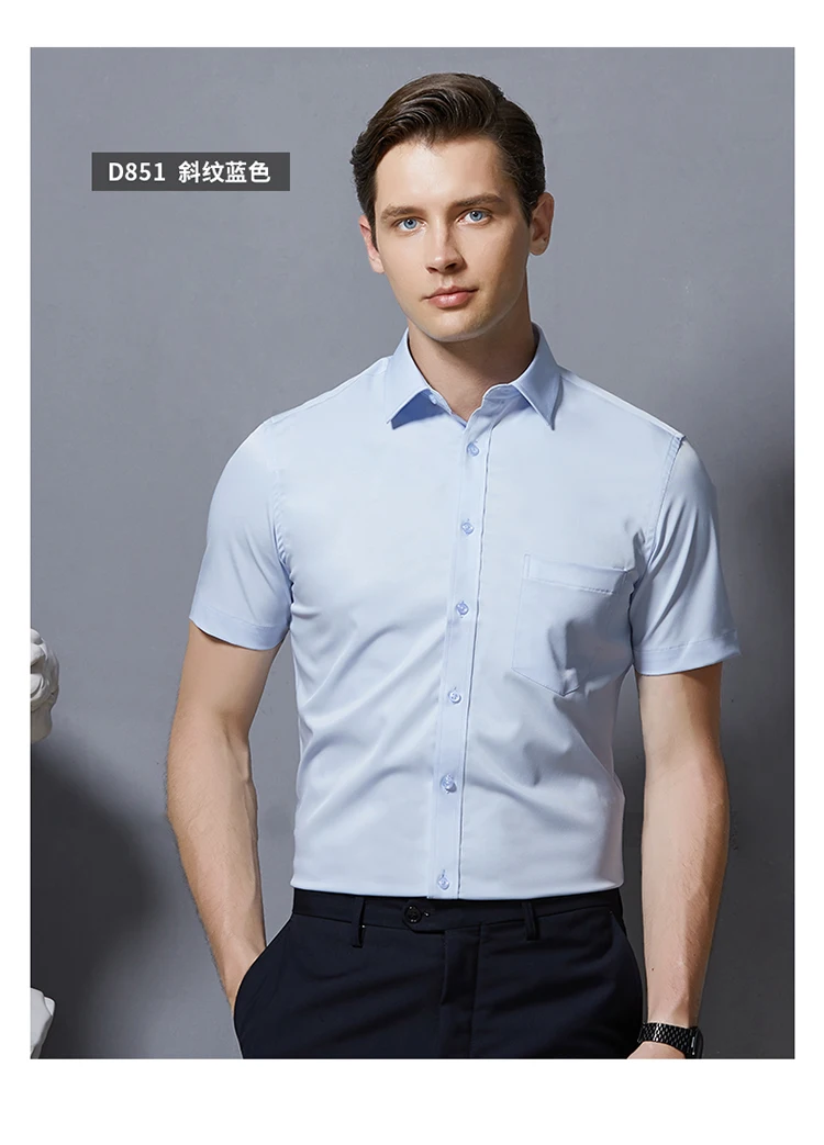 Анти-морщинки Мужская рубашка с коротким рукавом Slim Fit сплошной ...