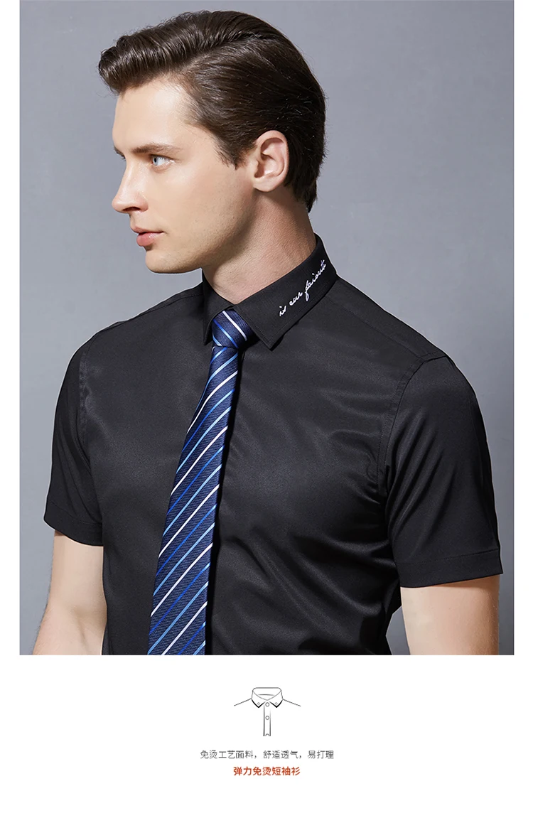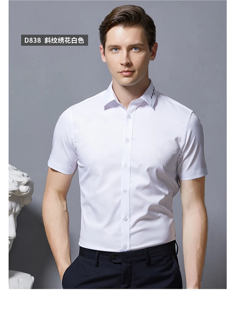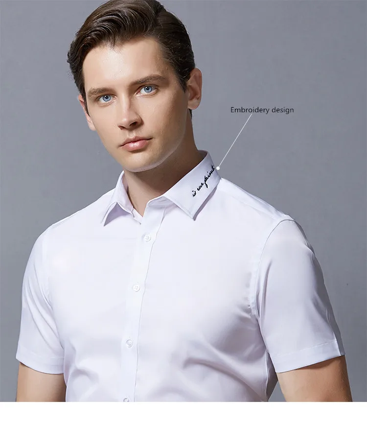 Рубашка мужская с вышивкой на воротнике, повседневная приталенная, эластичная, с короткими рукавами, на пуговицах, не мнется, в Корейском стиле, на лето