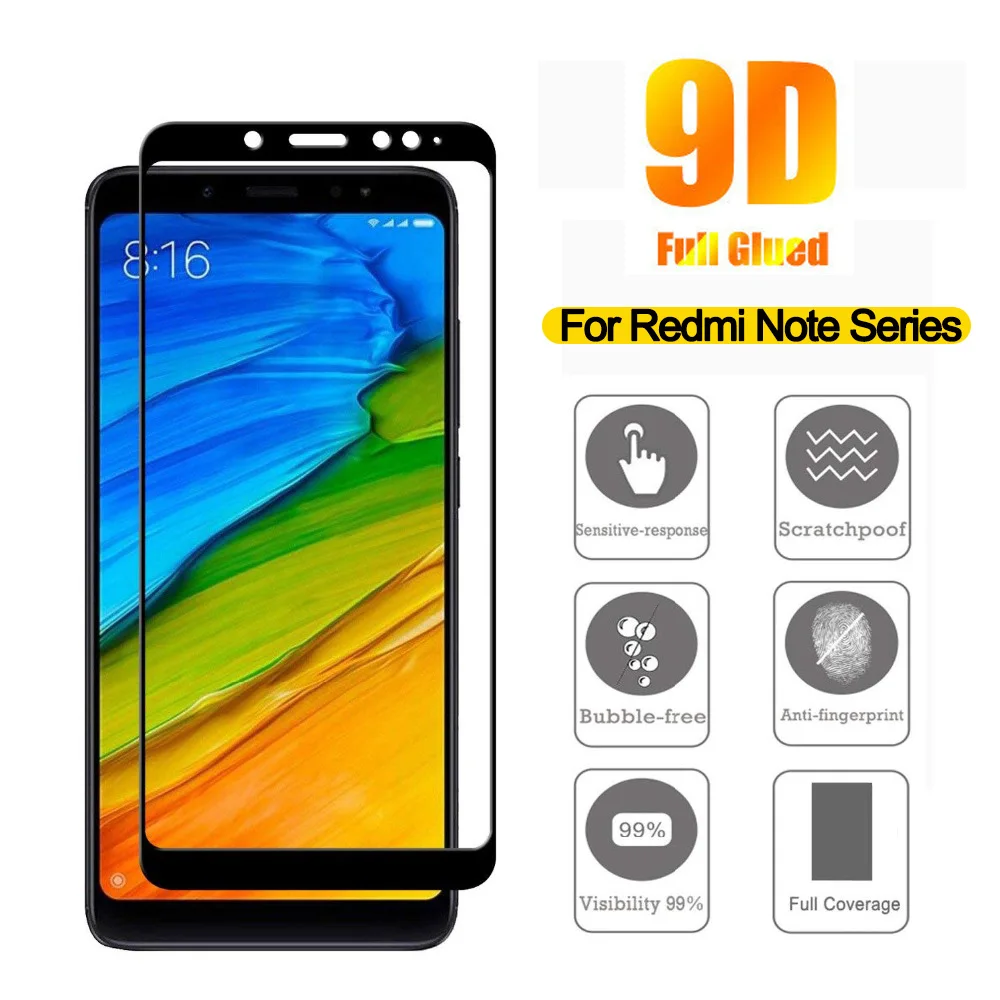 Закаленное стекло с полным покрытием для Xiaomi Redmi Note 9 8 7 Pr...
