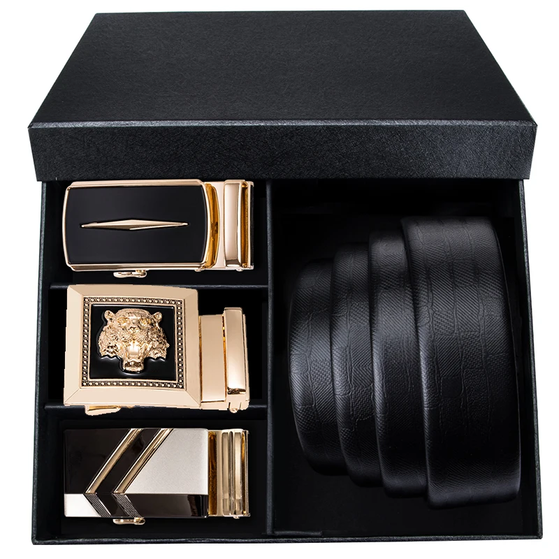Hi-Tie 2020, известный бренд, ремни для мужчин, черный, коровья кожа, натуральная кожа, пояс и Подарочная коробка, бизнес, золото, автоматическая пряжка, мужской роскошный ремень